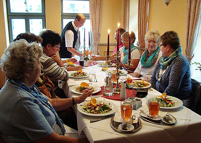 Nach der Vorspeise im Stadtcafé, einst als Cafe Frohberg Hoflieferant für den Fürsten, wird der Hauptgang diesmal im Ratskeller eingenommen. Der Nachtisch wird im griechischen Restaurant Syrtaki serviert. Dazwischen gibt es während des Rundganges immer wieder spannende und interessante Informationen zur Geschichte der Stadt.