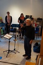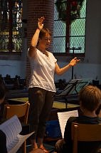 Dort braucht es viel Lautstärke, welche vor allem die Bläser bieten können. Deswegen gibt es eine extra Bläserprobe unter Leitung von KMD Richard Lah. Alle anderen Instrumentalisten werden morgen singen und üben das mit der Kantorin der Region Ilfeld, Christine Heimrich.