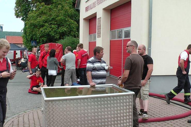 Und was es da wieder alles gab. Oldtimerausstellung, natürlich Wettkämpfe im Löschangriff und eine Tombola mit gut 800 Preisen. Natürlich war auch für Essen und Trinken genügend da. Am Abend spielen zurzeit die Partybuben zum Tanz auf und morgen gibt es einen Frühschoppen.