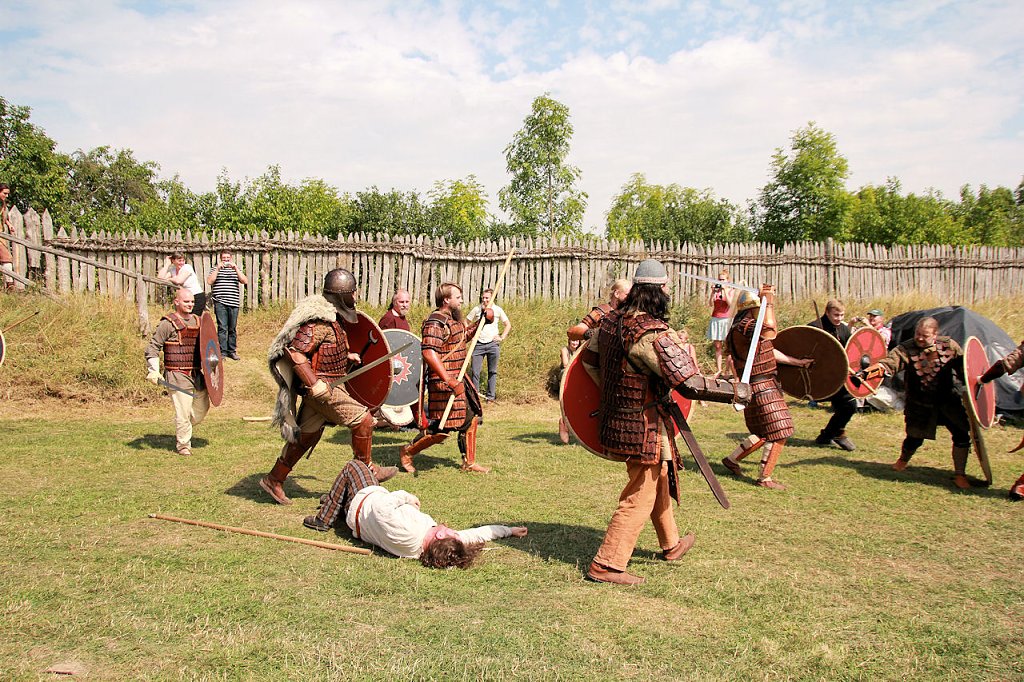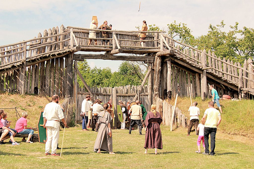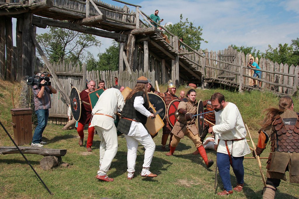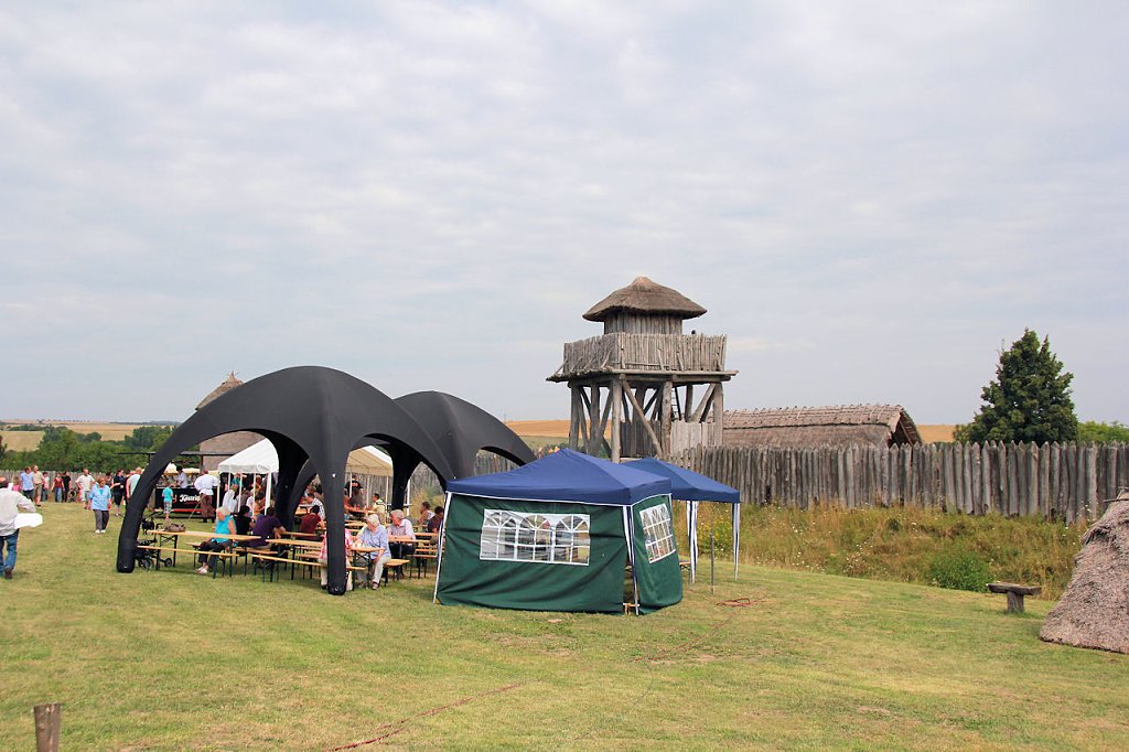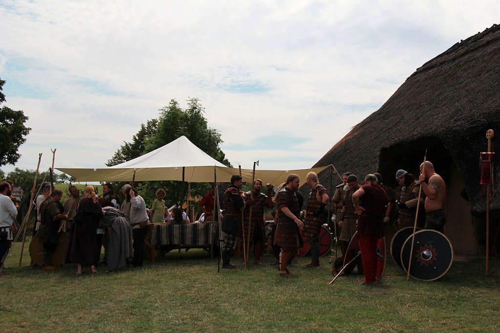 In ihren authentischen Gewändern versuchen die Germanen, einmal täglich die Burg zu stürmen. Sie stellen Kampfszenen der damaligen Zeit nach. Über offenes Feuer wird Suppe gekocht und die Backwaren kommen aus Lehmkuppelöfen. Darüber hinaus gab es viele handwerkliche Angebote wie Schmieden, Lederarbeiten, Töpfern, Bogenschießen und Brettchenweben. Zu sehen gab es auch Grabungsfunde.
