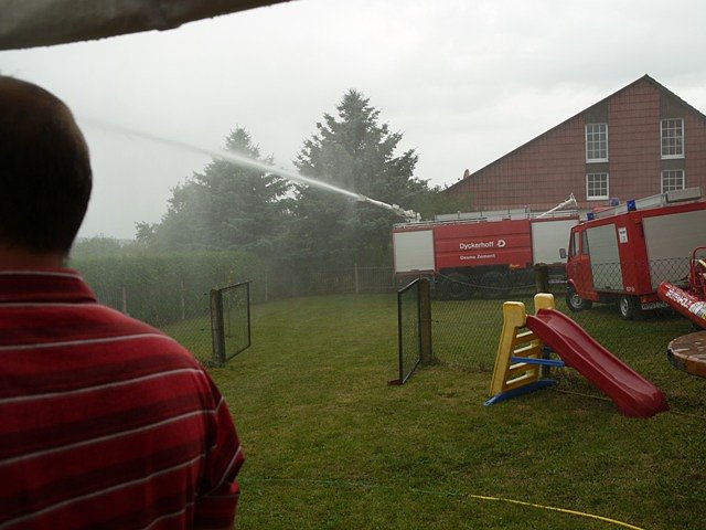 Für noch mehr Nässe sorgten Kameraden der Betriebswehr von Deuna Zement und zeigten den Besucher des Festes, wie Groß- und Industriebrände gelöscht werden können.