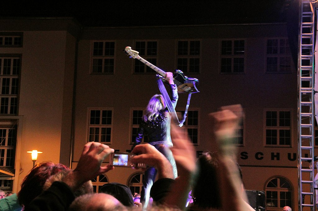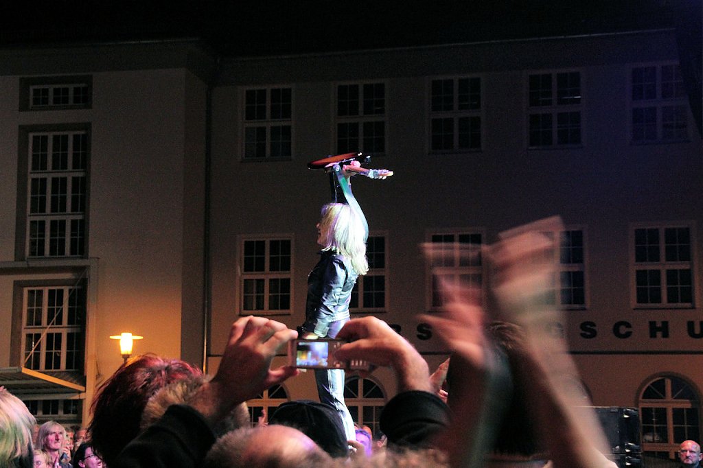 Trotz Regens war der Nordhäuser-Petersplatz auch am Abend gut besucht. Große Erwartung auf ein weiteres super Programm, mit tollen Künstlern, ließen Spaß und gute Laune garantieren. Karin Lehmann und Peter Blei waren für sie dabei...