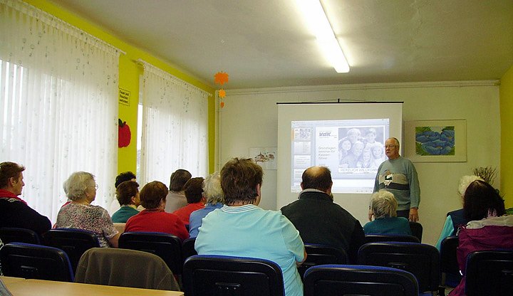 Nicht zuletzt durch das Engagement unseres Sozialverbandes VdK ist das Interesse vieler unserer Menschen an die Vorsorge mittels Patientenverfügung gewachsen. Das können wir immer wieder beobachten, wenn wir mit dem Informationsstand und in Gesprächen auf die Bürger zu gehen. So organisierten wir am Nachmittag des 2. November erneut einen Vortrag zur Patientenverfügung im Jugend- und Seniorenklub Heldrungen. Auch dieses Mal kamen unserer Einladung wieder 25 Besucher nach. Unser Vorstandsmitglied Manfred Neuhaus hatte es als Experte auf diesem Gebiet übernommen die Bedeutung dieser Verfügung zu erläutern und wichtige Hinweise zur richtigen Anwendung zu geben. Interessiert verfolgten die Besucher seinen Vortrag und er hatte viele Fragen zu beantworten. Auch ihm gilt ein herzliches Dankeschön.