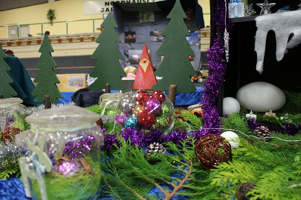 Und natürlich dürfen die schicken Basteleien, die Staubsauger und der Wein aus Langenlonsheim in der Pfalz nicht fehlen. All das schauten sich heute eine Vertreterin der Nordhäuser Wirtschaftsförderung sowie Landrätin Birgit Keller und ihr Büroleiter ausgiebig bei einer Führung an.