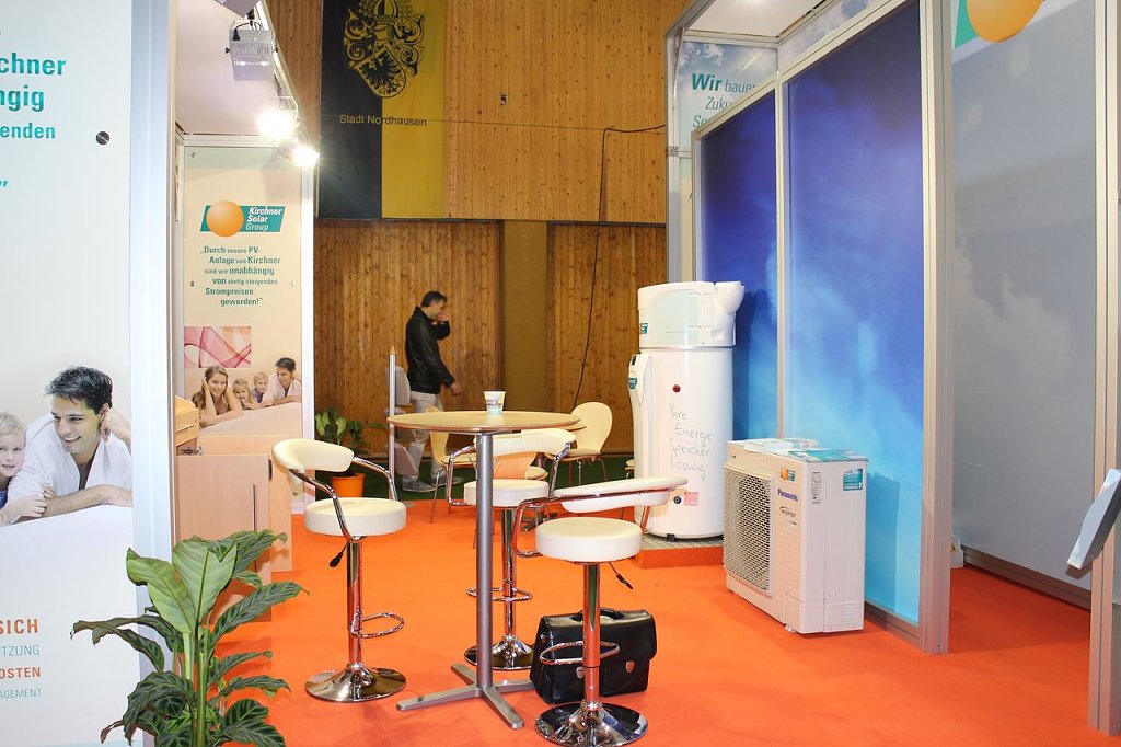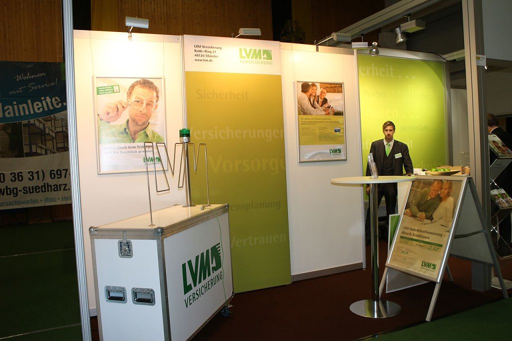 Wer nach regionalen oder gar lokalen Anbietern und Ausstellern sucht, der sucht - außer der EVN und der WBG mit einem Großbanner - vergebens. Die Herkunftsorte zeigen deutlich, dass lokal eigentlich was anderes ist: Freyburg, Königerode, Brotterode, Münster, Goslar oder Walltrop. Es will doch niemand behaupten, dass der Häuslebauer aus Nordhausen und Umgebung die Garagenzentrale aus Halle in Anspruch nehmen muss.
