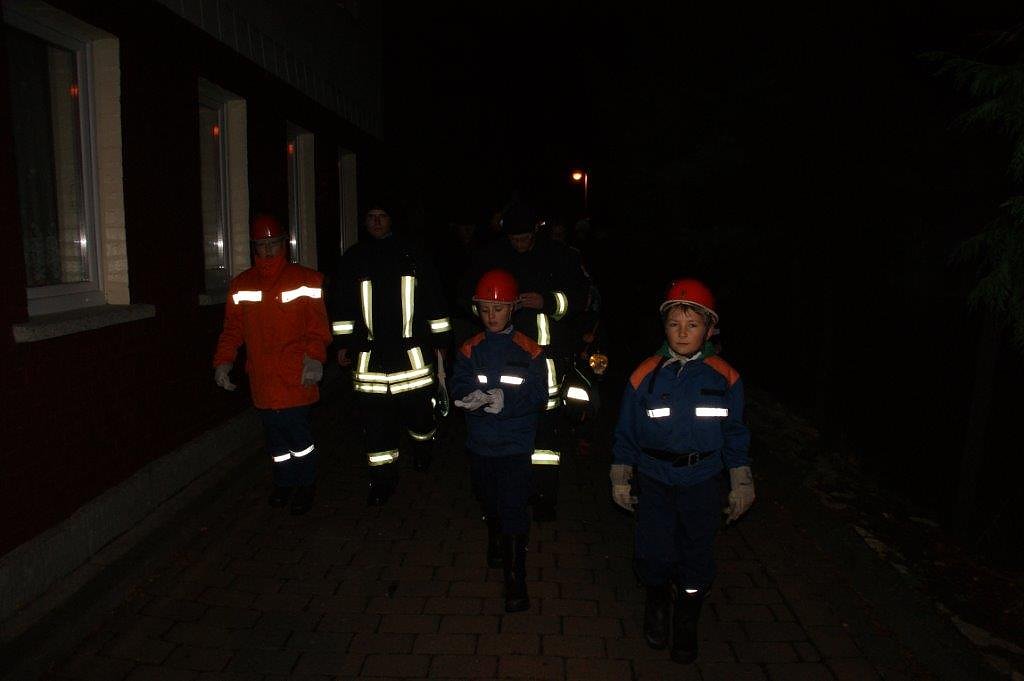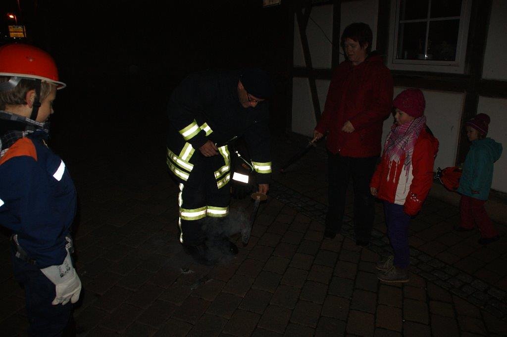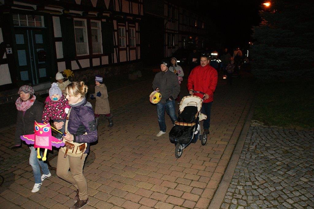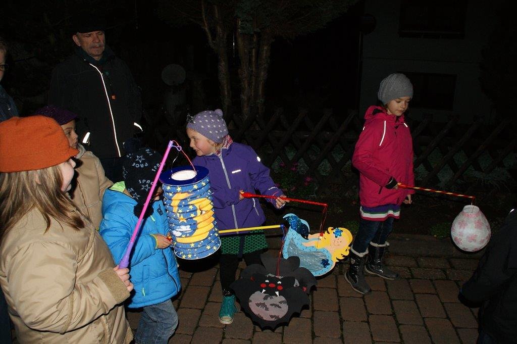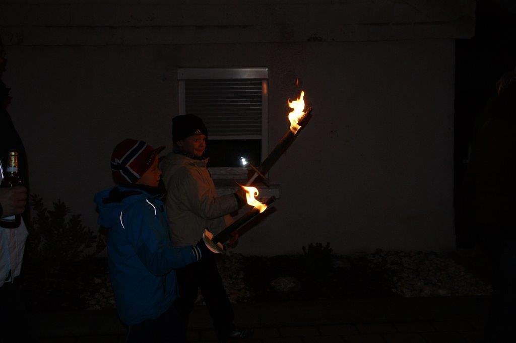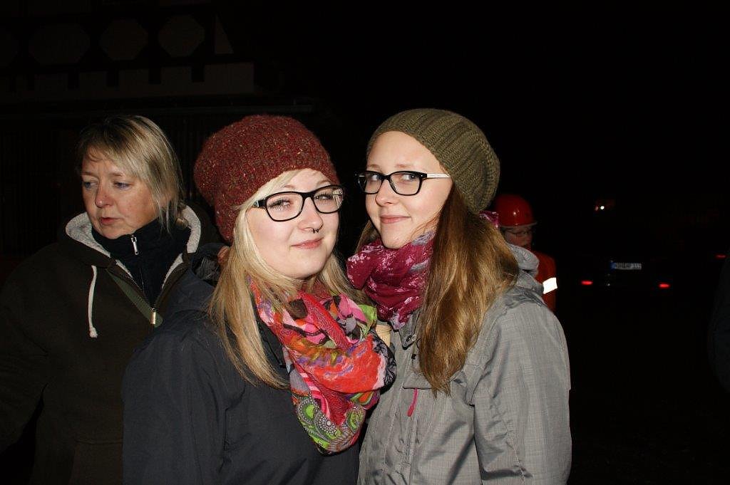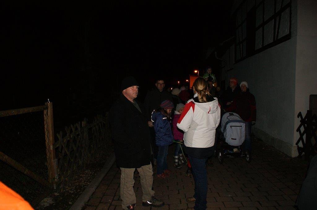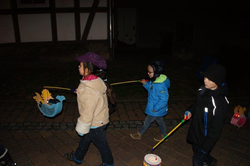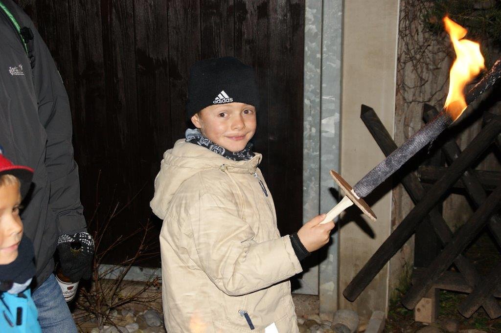 Nach der Aufführung des Martinsspiel wurden die bekannten Brezeln verteilt und geteilt. Im Anschluss and en Gottesdienst mit Pfarrer Bernhard Halverzogen große und kleine Obergebraer durch das Dorf. Begleitet wurden sie von der Freiwilligen Feuerwehr des Ortes.