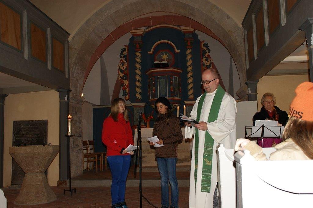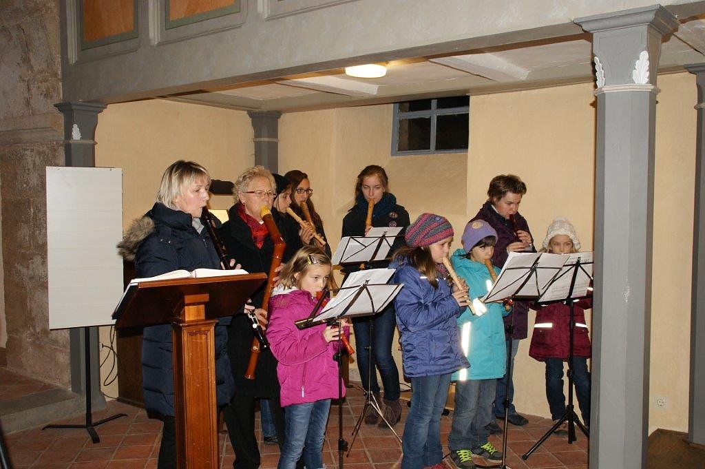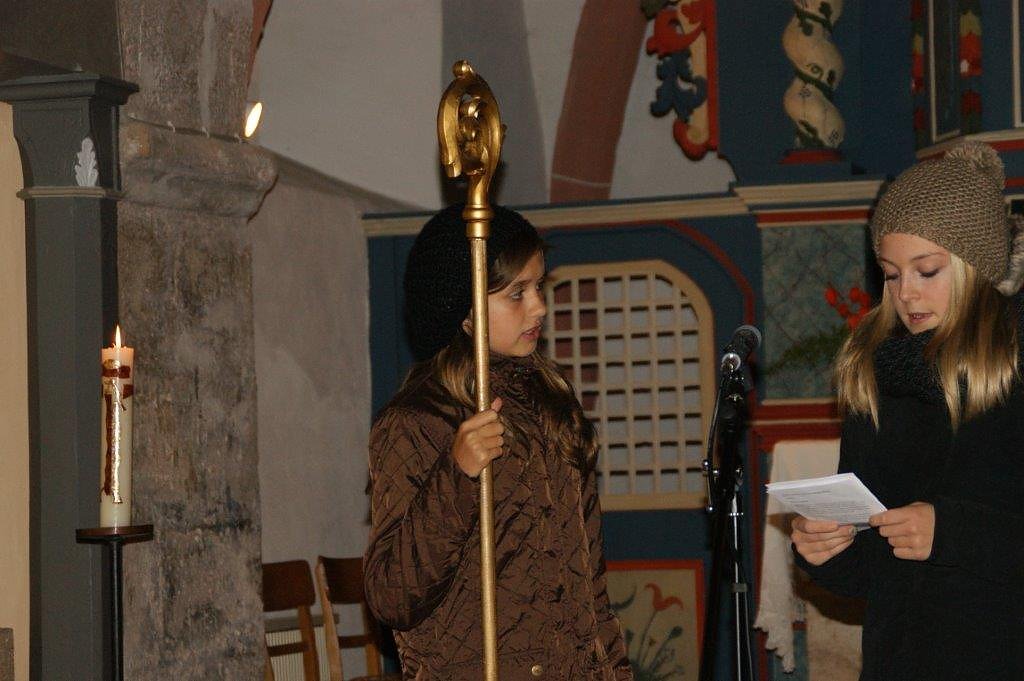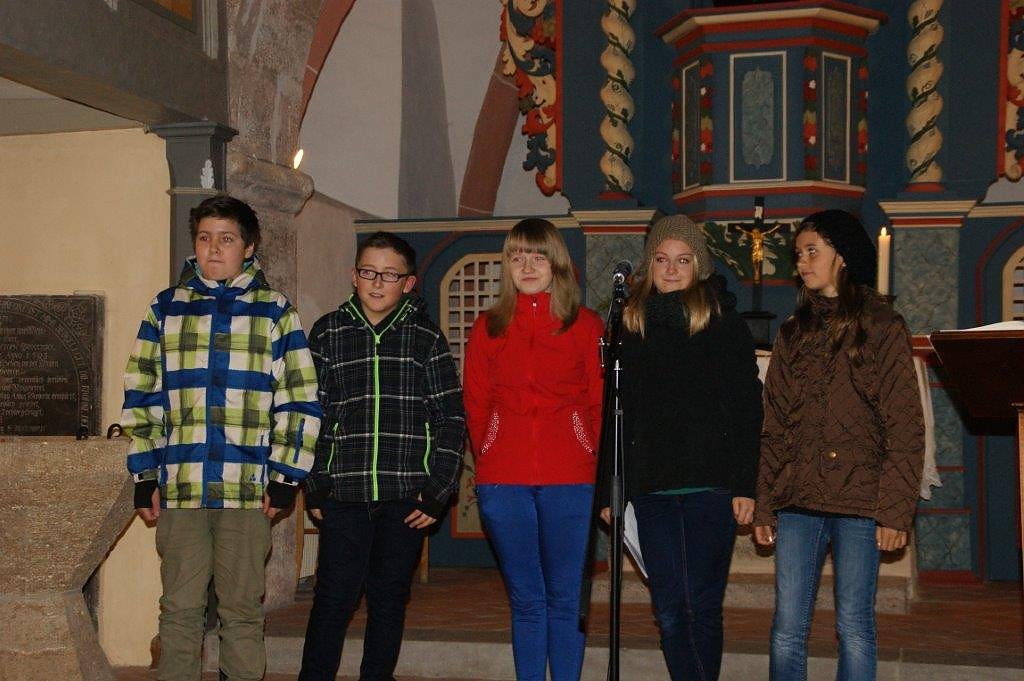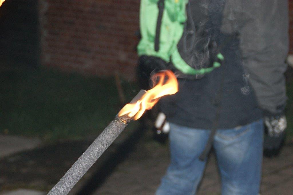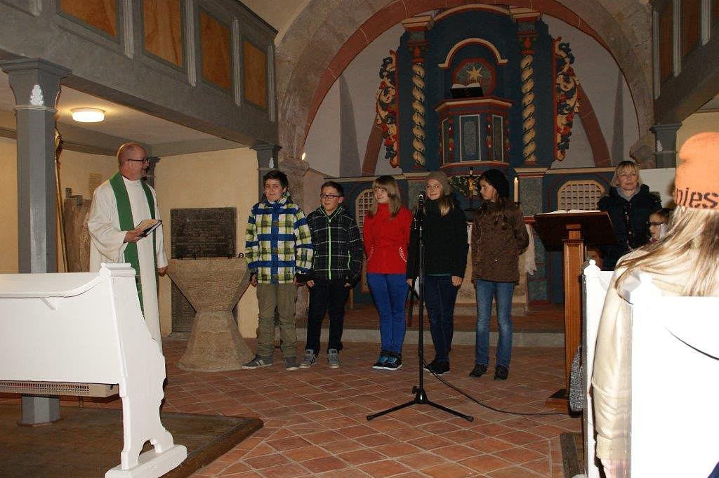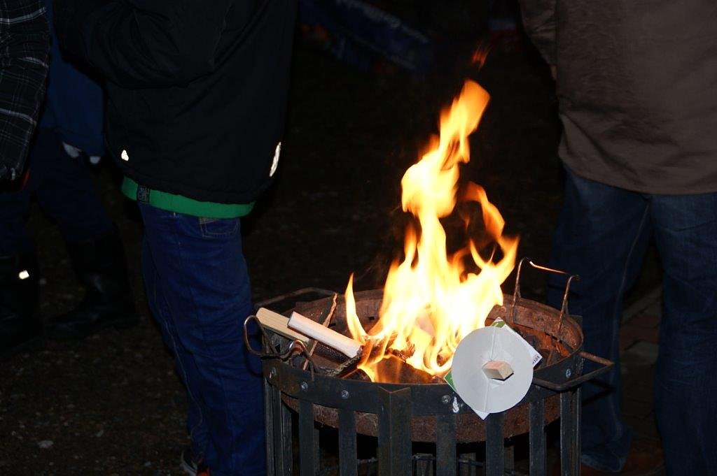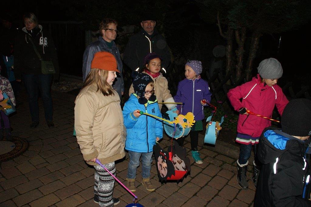 Nach der Aufführung des Martinsspiel wurden die bekannten Brezeln verteilt und geteilt. Im Anschluss and en Gottesdienst mit Pfarrer Bernhard Halverzogen große und kleine Obergebraer durch das Dorf. Begleitet wurden sie von der Freiwilligen Feuerwehr des Ortes.