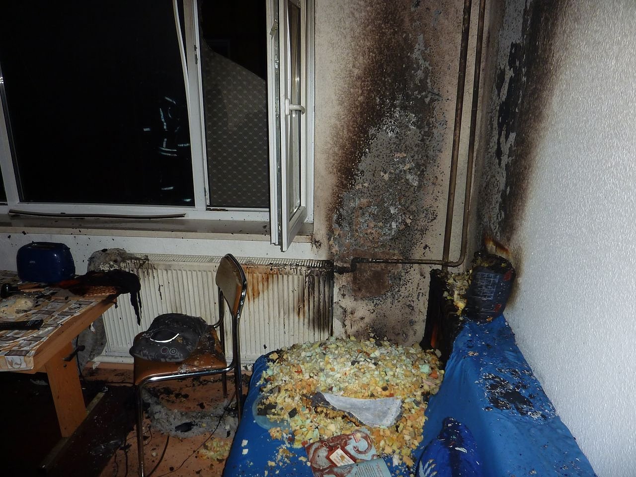 Das Feuer war kurz nach 4 Uhr in einem Zimmer eines Wohnheimes am Kommunikationsweg ausgebrochen. Auslöser dürfte ein Adventskranz gewesen sein, der zunächst die Gardine und dann die Einrichtung des Zimmers in Brand gesetzt hatte.