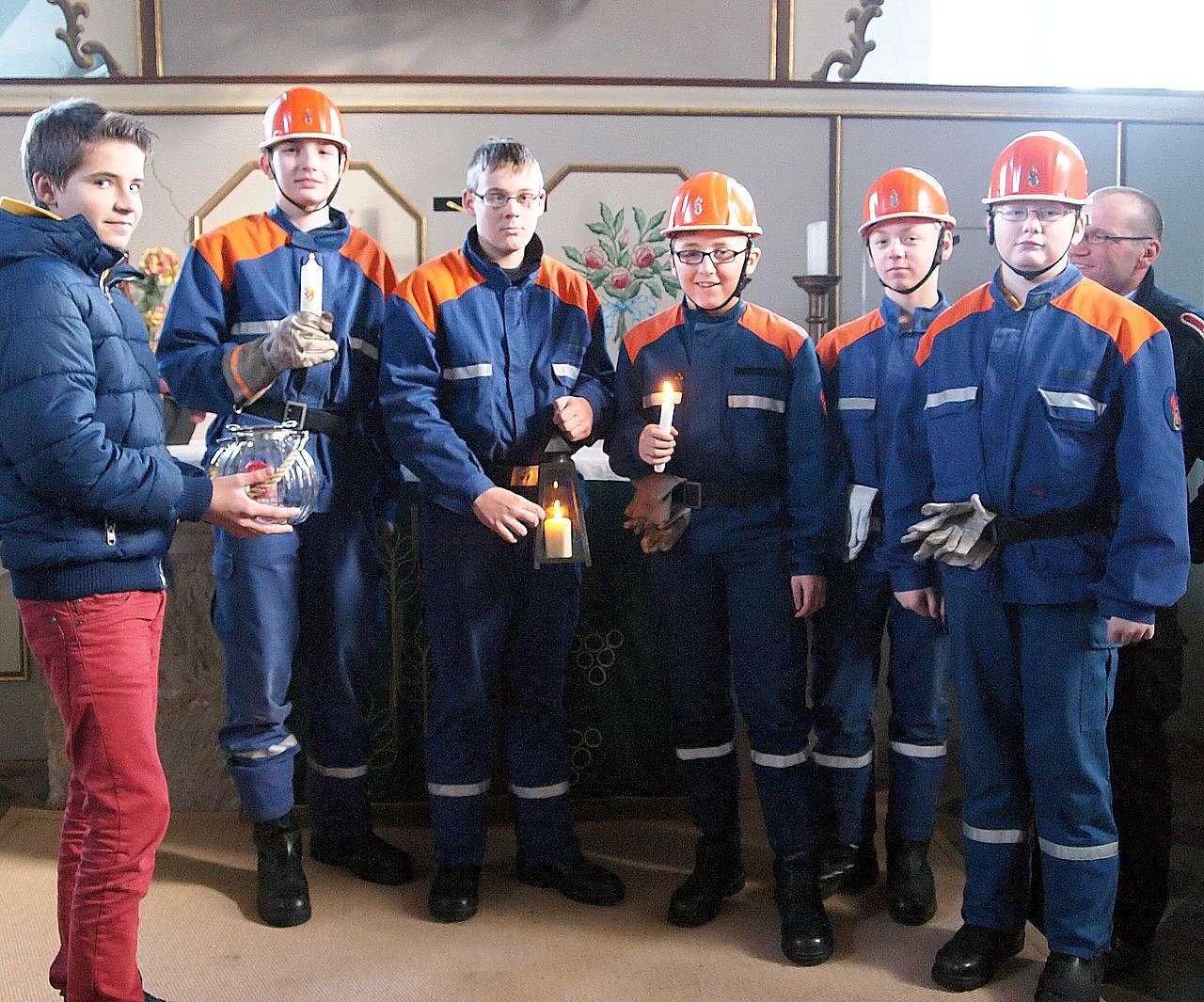 Soeben hat die Jugendfeuerwehr Obergebra der Kirchengemeinde Elende das Friedenslicht überreicht. Oberfeuerwehrmann Enrico Preschel war mit den Jungs der Jugendfeuerwehr: Tim Preschel, Max Schwiefert, Max Hartmann, David Himmelbauer und Erik Winsel in der Elender Rosenkirche und übergab das Licht an Lars Englert...