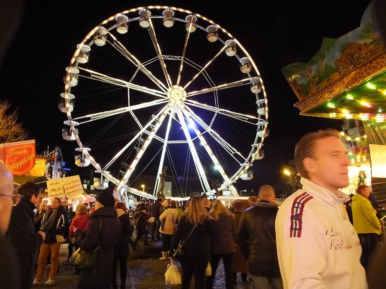 Das lag natürlich am Zeitpunkt, kurz vor Heiligabend und am verkaufsoffenen Sonntag hier in Halle. Wir hatten den Eindruck, dass viele noch auf der Jagd nach Geschenken waren, aber ein Blick in die Gesichter der meisten Menschen verriet uns das alle sehr entspannt und fröhlich unterwegs waren.