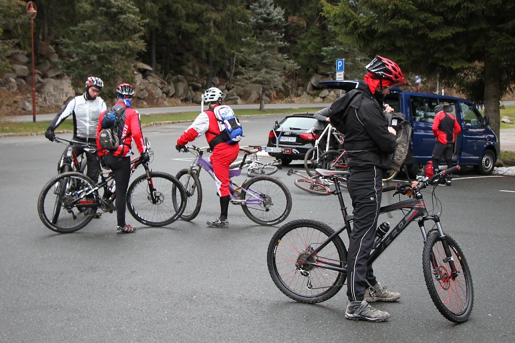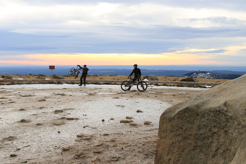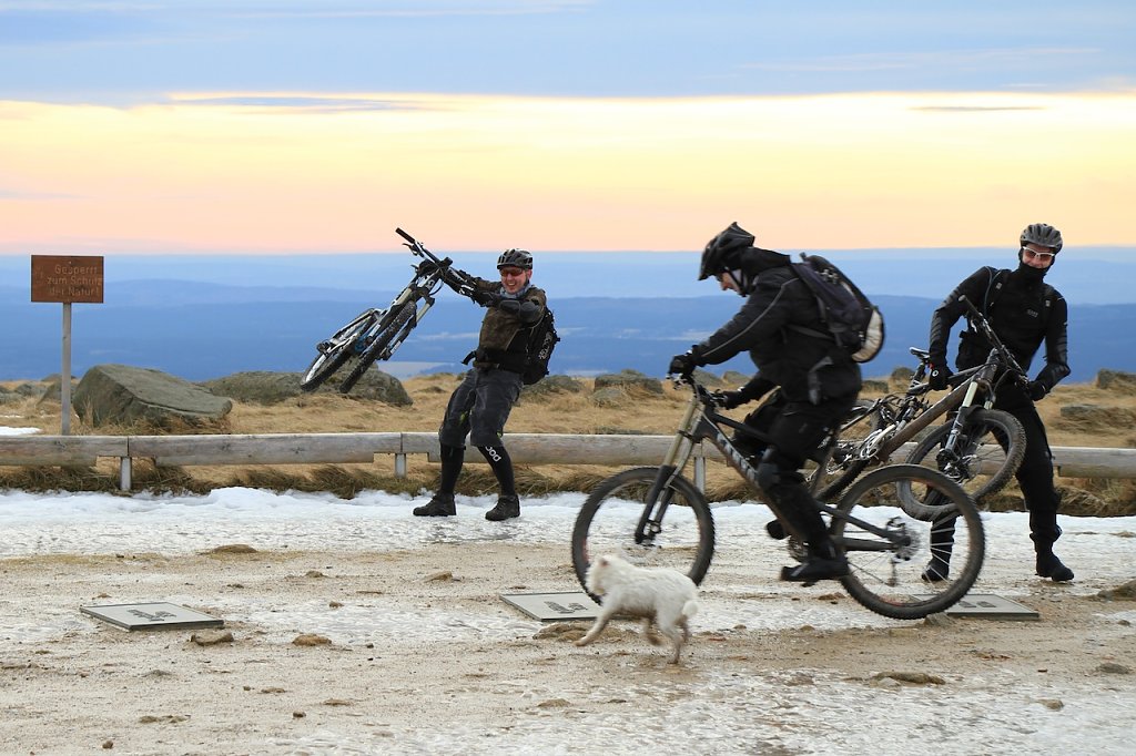 Über 40 winterfeste Biker trafen sich gegen 9 Uhr in Schierke auf dem Parkplatz, um den Heiligen Abend mit körperlicher Anstrengung einzuläuten. Man kann nicht von strahlendem Sonnenschein sprechen, aber das Wetter war trotzdem akzeptabel. Temperaturen über Null sowie eine schöne Fernsicht belohnten die Teilnehmer auf dem Weg zum Gipfel.
