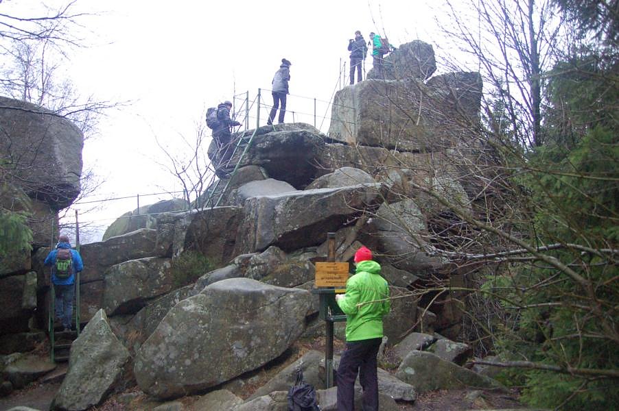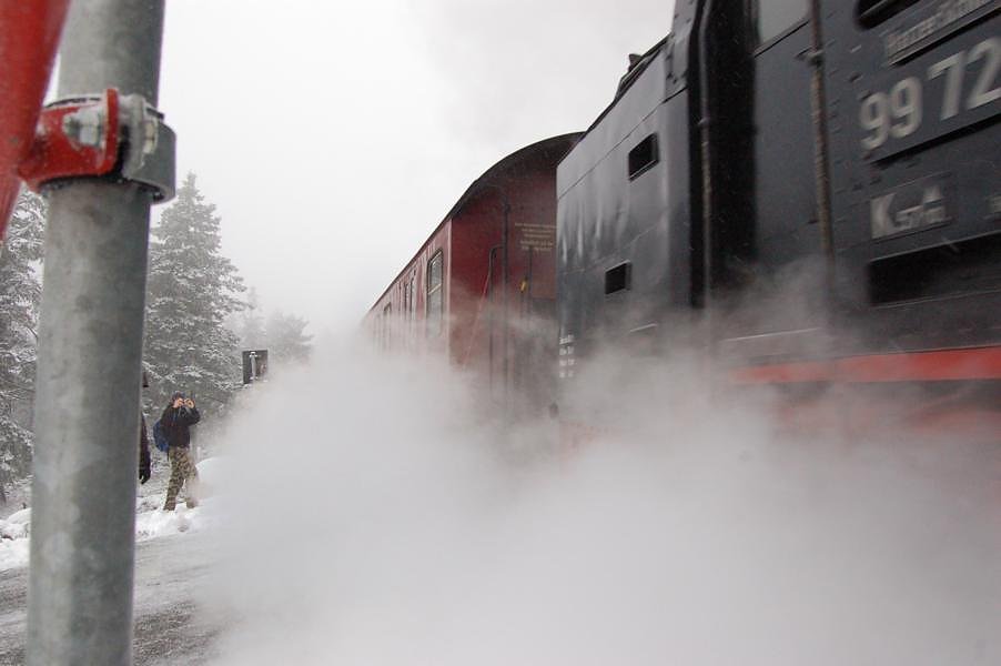 Oben angekommen bei nicht sehr schönem Wetter, aber egal, fuhr auch schon die Harzquerbahn ein und aus ihr stiegen noch ein paar Doppelkörner aus. Zusammen ging es dann zum Brockenwirt, Erbsensuppe mit Bockwurst essen und ein Bierchen dazu und dann war es Zeit für den gemeinsamen Abstieg.