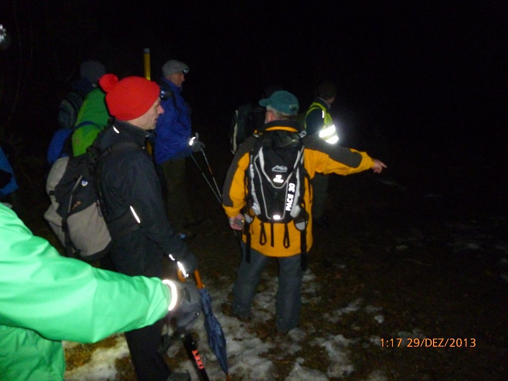 In manchen Jahren mussten sich die Wanderer sogar beim Spuren durch 20 oder 30 cm tiefem Schnee abwechseln. Davon konnte diesmal jedoch keine Rede sein: Grün-braune Wege, Weihnachtsbäume mit Elektrokerzen aber ohne Schneekristalle und alte Bergbauernhäuser ohne Eiszapfen. Nur im Gebiet des knapp 900 Meter hohen Aschbergs, sonst ein Wintersportzentrum, sahen wir wenigstens ein paar Schneeflecken.