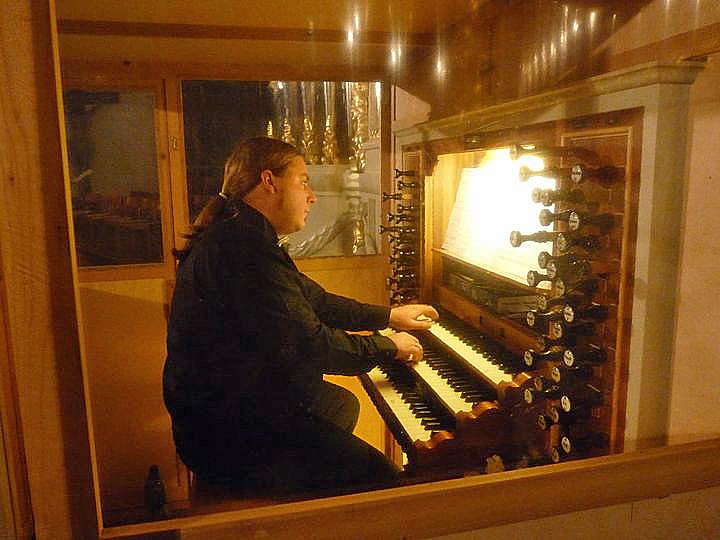 Da man den dem Organisten beim Spielen im wahrsten Sinne des Wortes nicht über die Schulter schauen kann, stellte er sich dem Publikum in der sehr gut gefüllten Trinitatiskirche erst mal vor, ehe er in seinem Kasten Platz nahm. Die Befürchtungen, von Fauß, die Orgel könnte wegen der doch recht tiefen Temperaturen nicht so gut klingen, waren doch unbegründet. Nur "geschulte" Ohren werden da vielleicht etwas raus gehört haben.