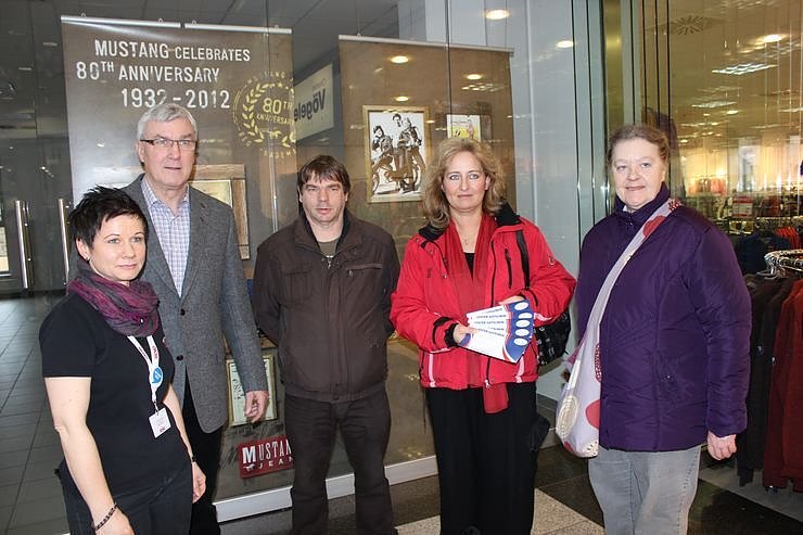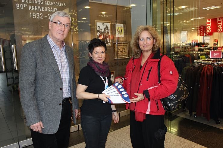 Die fünf Gutscheine a 50 Euro, zum Einkauf in der Galerie, wurden von Cathleen Seifert im Beisein von Wolfgang Linz an an Ute Patek (re.), Mitarbeiterin im Stift übergeben.