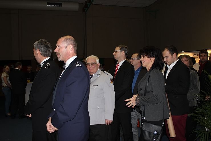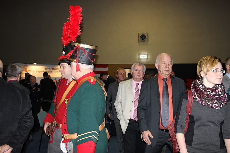 Landrätin Antje Hochwind (SPD), der Standortälteste Oberstleutnant Markus Kankeleit als "Hausherr" und der Vorstandsvorsitzende der Kyffhäusersparkasse, Ulrich Heilmann, begrüßten die Gäste. Wie kn erfahren hat, sind 1.300 Einladungen versendet worden und gerechnet wird mit rund 800 Gästen.