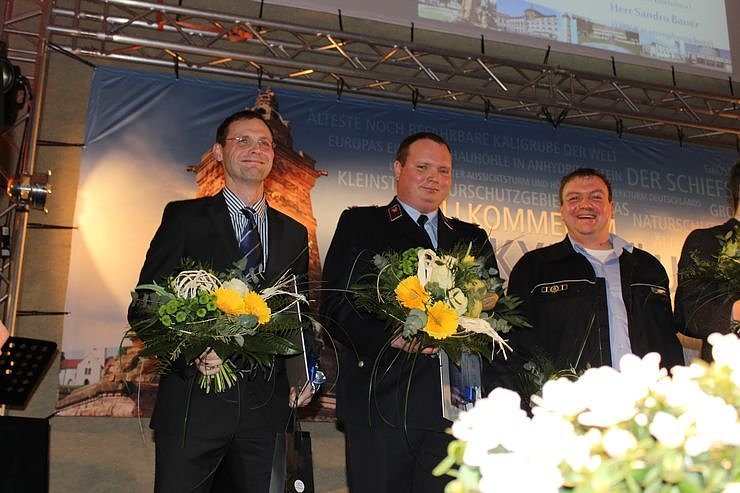 Ebenfalls geehrt Jens Fischer, Gruppenführer des Einsatzzuges 2. – Feuerwehr Bad Frankenhausen. Die Ehrung erfolgte für das erhebliche kreisübergreifende Engagement im Hochwassereinsatz 2013.