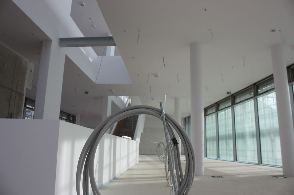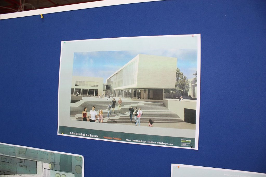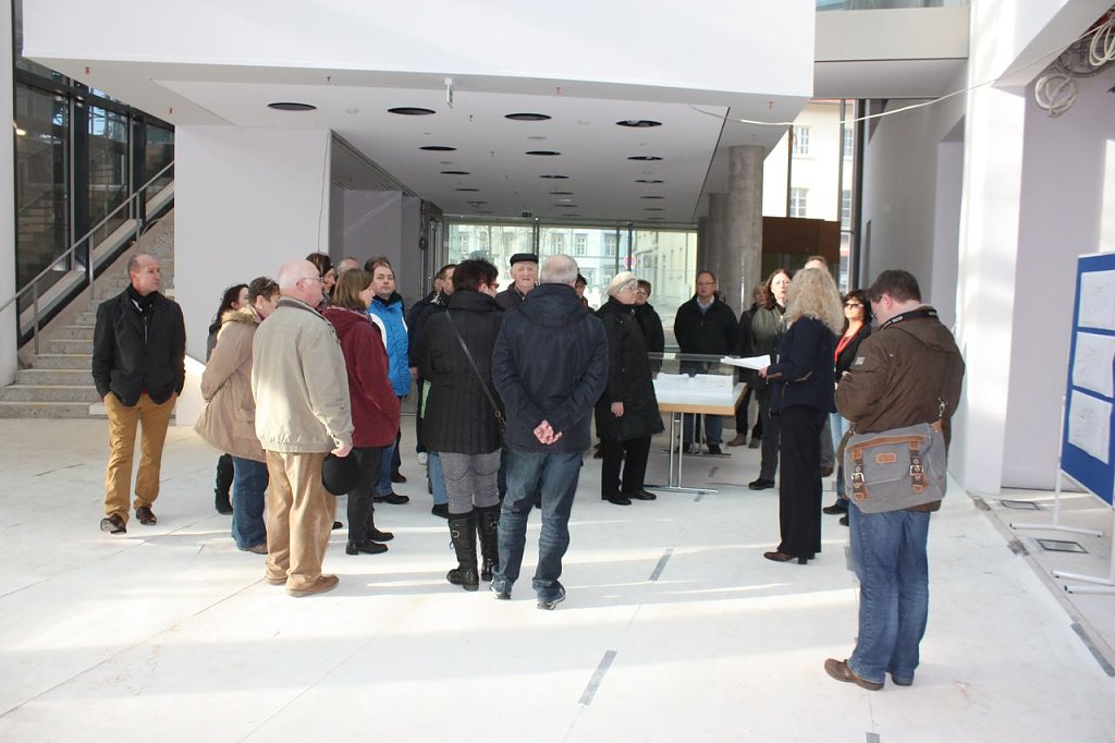 Rund 280 Personen hatten sich für die drei Führungsrunden angemeldet, die jeweils aus drei Gruppen bestanden. Mitarbeiter der Verwaltung aber auch die federführende Architektin Dr. Anke Schettler aus Weimar führten die Neugierigen durch den Neubau. Es ist auch die letzte Möglichkeit, das Bürgerhaus zu betreten. Am Montag sollen die Fußbodenleger loslegen. Wir vermitteln Ihnen mit einer kleinen Bilder-Galerie einen ersten Eindruck. Später wird es auf nnz-tv auch ein Video geben.