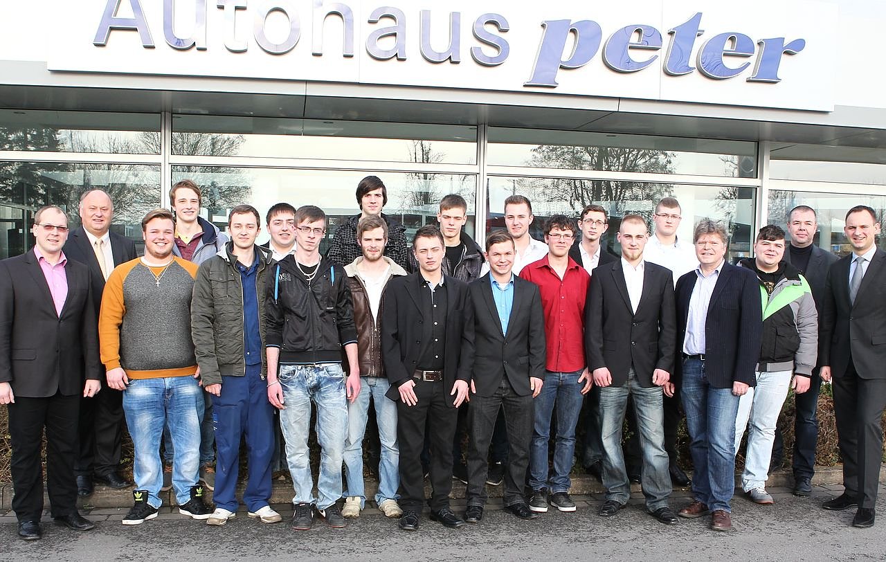 Ihr alle seid in unserer Unternehmensgruppe herzlich willkommen; sagte Firmenchef Helmut Peter. Er machte deutlich, dass die jungen Männer sich in den vergangenen Jahren mit dem Klima und mit der Firmenphilosophie vertraut machen konnten. Es ist die Philosophie der Leistung, die in der Gruppe im Vordergrund steht und es ist immer das wichtigste Moment, das es in einem Autohaus zu bedenken gibt: den Kunden.