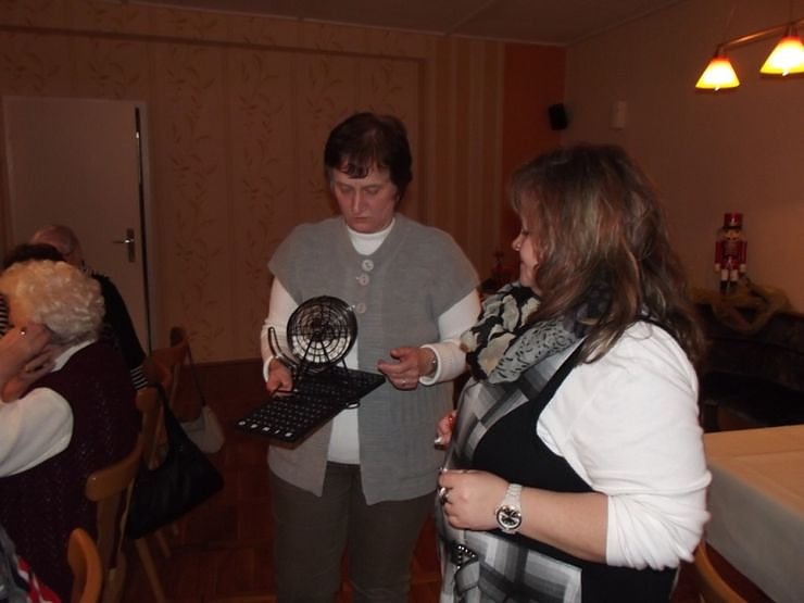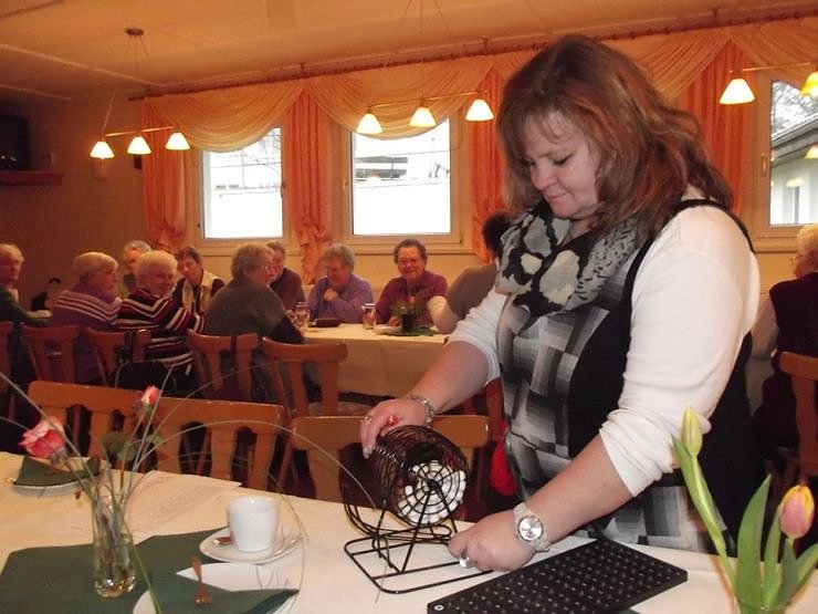Die Wohnbezirksvorsitzende Christa Groß hatte die Senioren zu einem Bingo-Nachmittag ins Juventas eingeladen. Trotz der winterlichen Witterung und auch der Gefahr von teilweiser Eisglättebildung waren 22 Gäste gekommen. Nach köstlichem, vom Juventas selbst gebackenen Kuchen und heißem Kaffee wurden die Spielregeln kurz erklärt und die Bingoscheine ausgeteilt und schon konnte es los gehen.