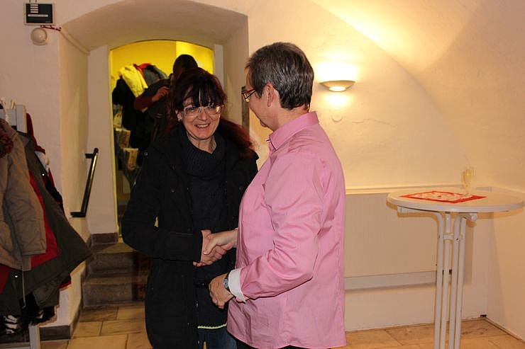 Ehrengast u.a. der Stellvertretende Landesvorsitzende Die Linke Thüringen, Steffen Dittes hier mit Kersten Steinke vor dem Veranstaltungsort.