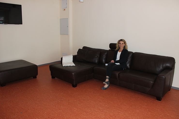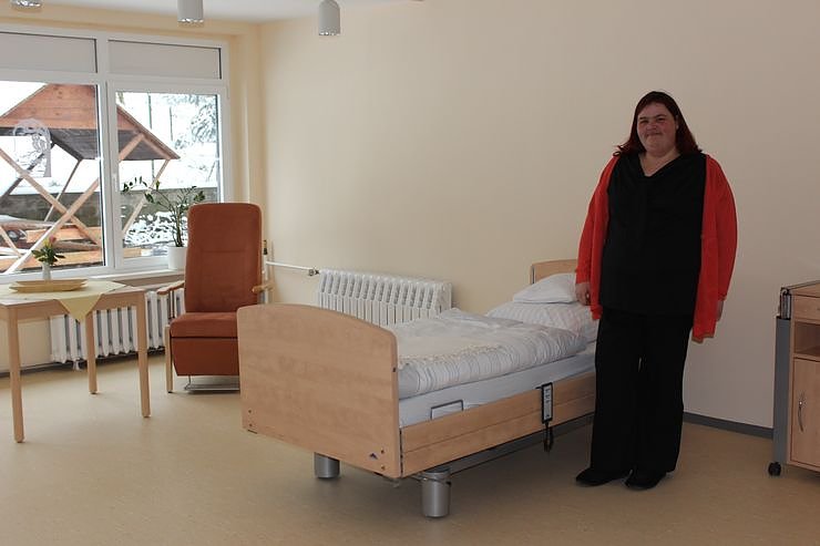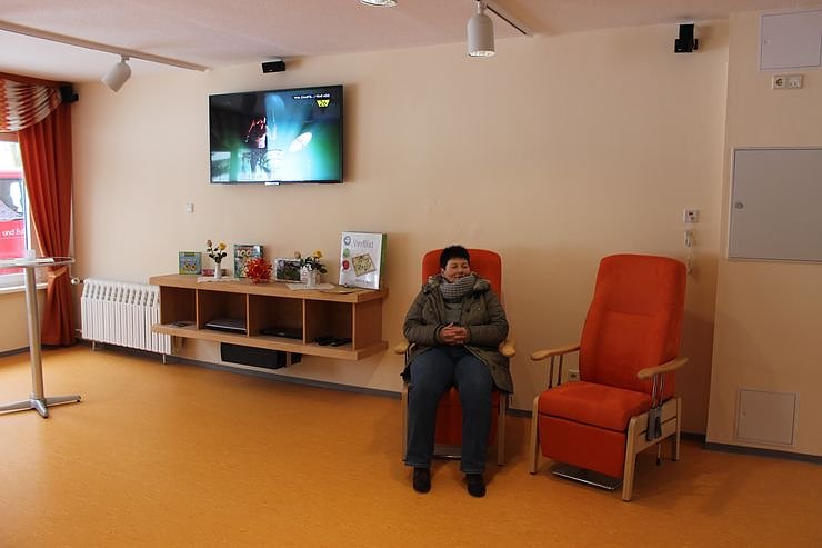 Die Einrichtung wurde unter den pflegerischen Gesichtspunkten gestaltet. Hier zeigt die Leiterion der Einrichtung, Diana Fischer, dass in den modernen Räumen auch Rückzugsräume sind, um sich auch mal ausruhen zu können.