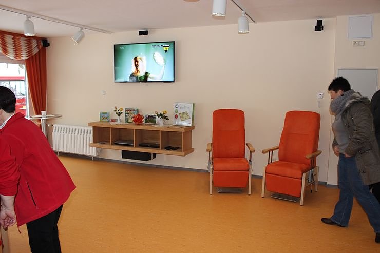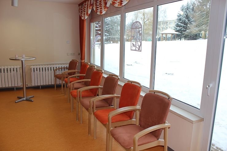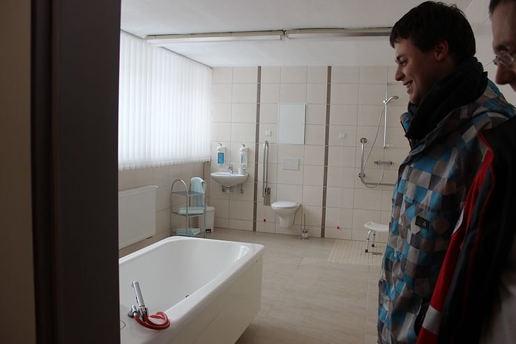 Neben Ruhesesseln, Pflegebetten, Musik- und Fernsehanlagen, seniorengerechtem Beschäftigungsmaterial, ist auch der Sanitärbereich senioren- und behindertengerecht, bis hin zu einer Hubbadewanne, eingerichtet.