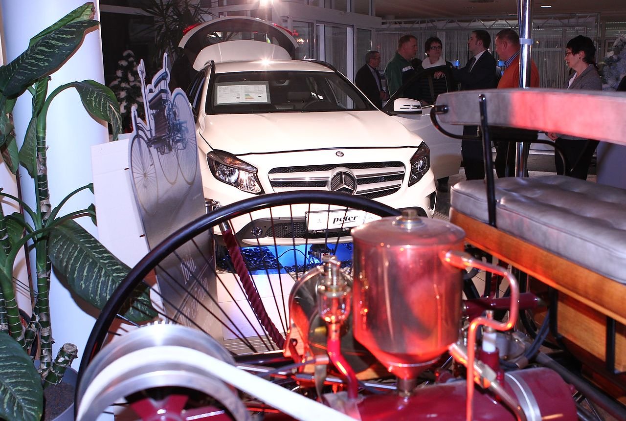 Vorgänger und Nachfolger: Im Vordergrund der Mercedes Motorwagen - das erste Automobil dieser Welt, dahinter die neueste Stuttgarter Kreaktion: der GLA
