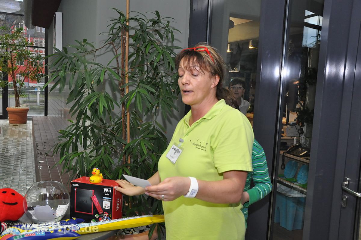 Eine Spielkonsole Wii Mario Kart und zwei iPod Shuffle warteten auf die Gewinner am ersten Ferientag im Badehaus. Da ging so richtig die Post an und unser City-Scout war für Sie dabei...