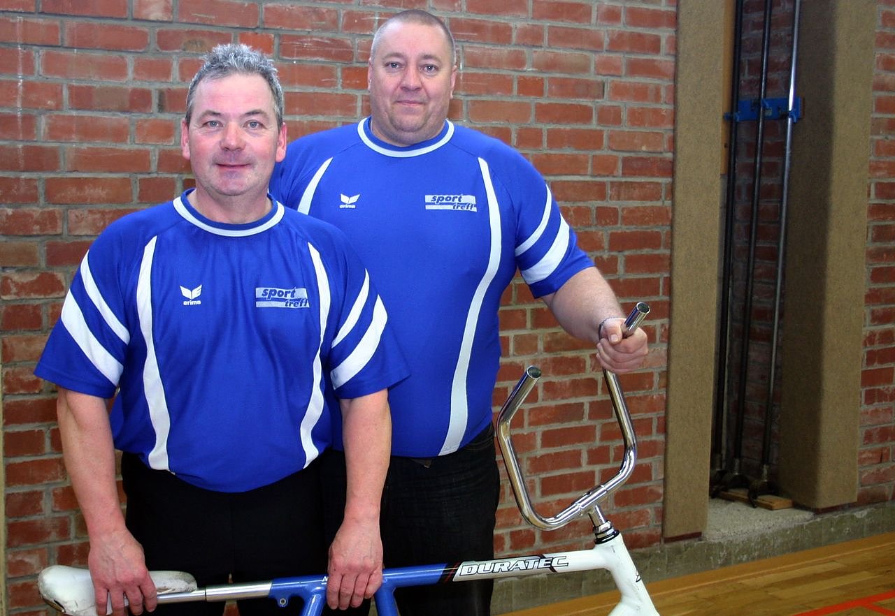 Die Ilfelder Uwe Fiebig und Heiko Etzrodt haben schon vor dem letzten Spieltag den Staffelsieg in der Radball-Bezirksliga in der Tasche.