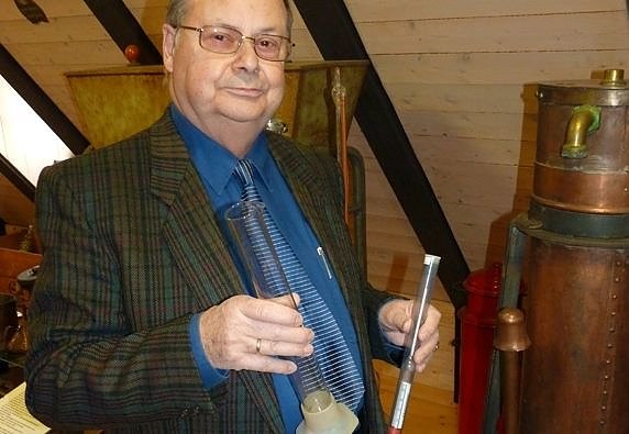 Hans-Dieter Werther destilliert Branntwein im Museum Tabakspeicher.