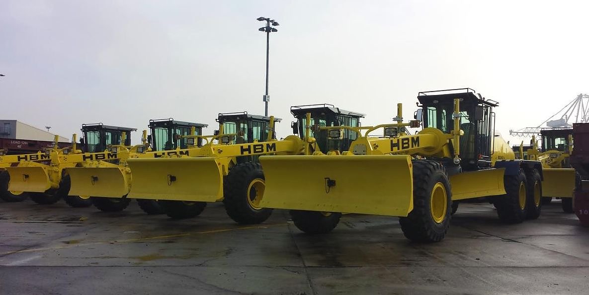 Die Motorgrader mit Einsatzgewichten von bis zu 24 Tonnen werden in Nordhausen entwickelt und produziert. 15 Motorgrader haben bereits das HBM-NOBAS Firmengelände in Nordhausen verlassen und werden am Hamburger Hafen für ihren Weitertransport nach Ghana verladen.