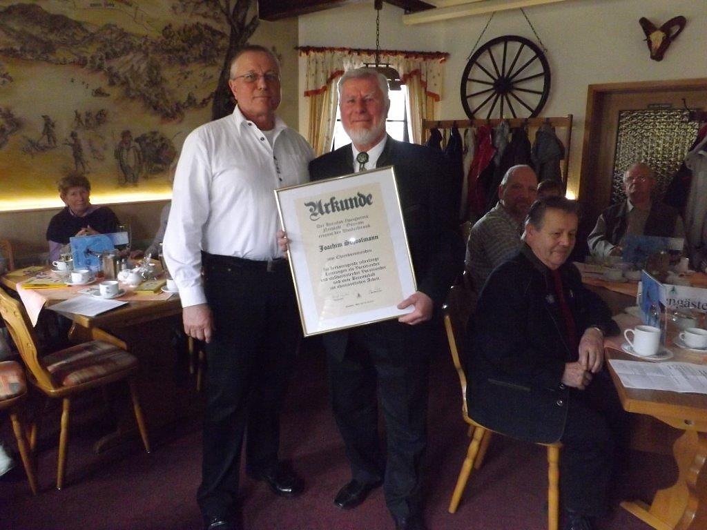 Diese Liebe zur Heimat ist es auch, was alle unsere Ehrenamtlichen antreibt. Da sind die Fachwarte zu nennen, die Schriftführer und Kassenwarte. An alle richtet Ullrich Krutein seine Dankesworte. Danke, sagte auch Joachim Schoolmann an Ulrich Krutein für die drei Jahre als Vorsitzender des Zweigvereins.
