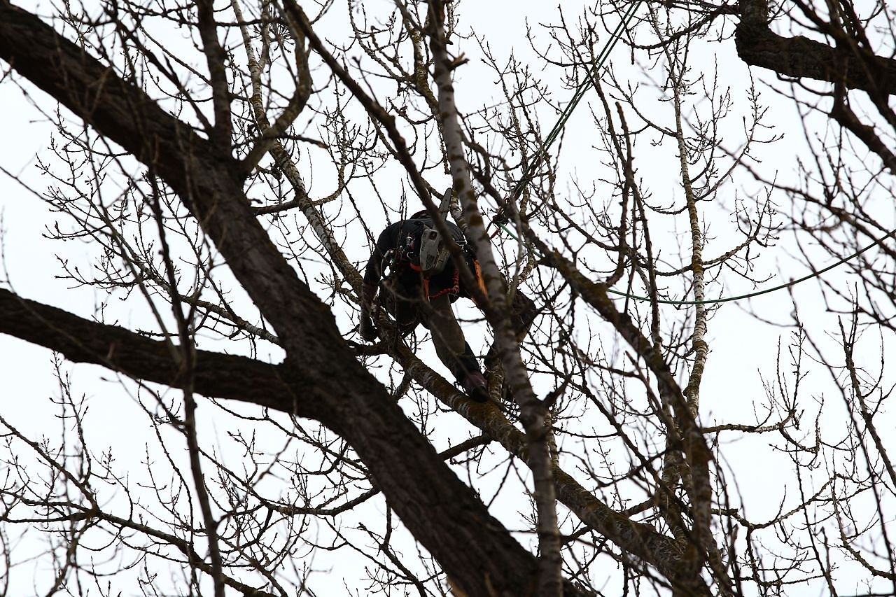 Die beauftragte Firma Becker wird dabei von Baumkletterprofis der Kletterschule Nürnberg unterstützt, um die Arbeiten so kurzfristig wie möglich zu realisieren. Die ungünstige Witterung zwingt zu einem zügigen Ende der Arbeiten, um die eventuell bald einsetzende Brutzeit nicht zu stören. Ein früherer Termin konnte auf Grund der hohen Auslastung der Spezialkletterer nicht realisiert werden.
