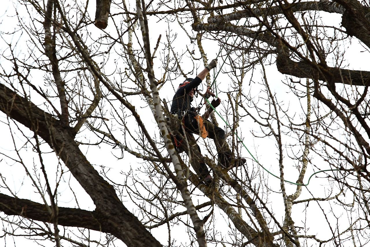 Der Hauptteil der Baumpflege wird an den Pappeln ausgeführt. Bei den Bäumen wurden mehrere Schadsymptome festgestellt. An einzelnen Pappeln muss die Krone gekürzt werden um die Standsicherheit zu erhalten. Auf Grund der Höhe (ca. 40,00 m) und dem starken Pilzbefall (hohle Stämme) macht sich die Schnittmaßnahme erforderlich. Als Alternative gäbe es nur die Fällung.