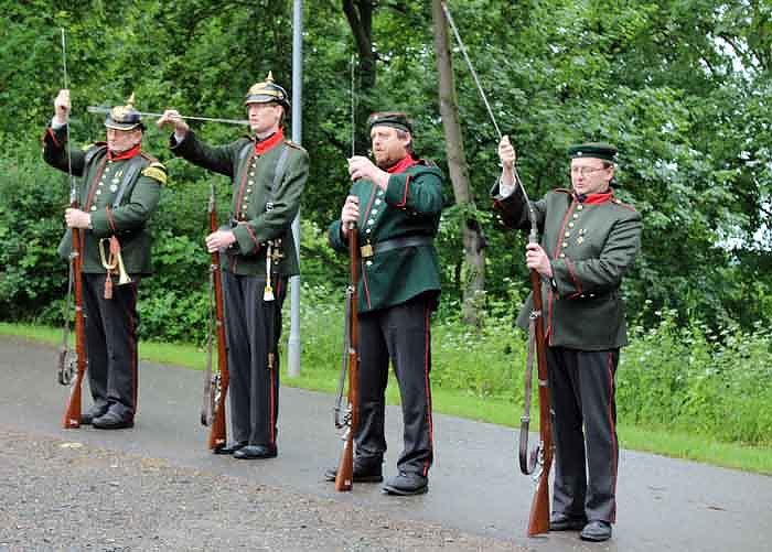 Aber Spaß beiseite, Vertreter der Interessengemeinschaft Füsilierbataillon Schwarzburg Sondershausen 1866 übten tatsächlich am heutigen Vatertag in Sondershausen. Was trieb die Truppe zu diesem wichtigen Feiertag nach Sondershausen?