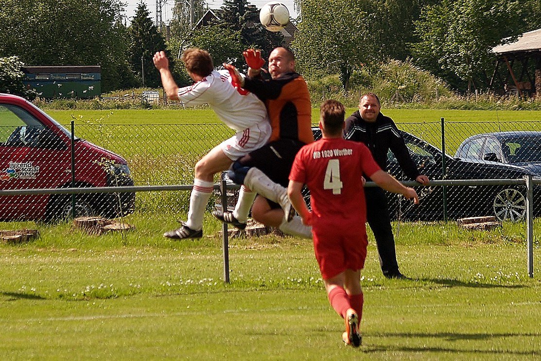 In der 37. Minute kann Markus Teichmann einen Schuss von Robert Salzmann nur kurz abwehren. Den abgewehrten Ball trifft Marcel Verkouter nicht und somit wieder eine Chance vertan. Aber nur 2 Minuten später folgt ein Freistoß von der linken Seite, den Ricardo Dröscher zum 1 : 1 verlängert. Von den Gastgebern war bis zur Halbzeit nichts nennenswertes mehr zu berichten. Die Gäste aus Salza waren in den ersten 45 Minuten das bessere Team. Mit Beginn der zweiten Halbzeit änderte sich das Geschehen. Die Gastgeber spielten nun aus der Abwehr heraus und übernahmen nun die Initiative und gleichsam verloren die Gäste ihren Spielfaden. Folgerichtig war nach einem Einwurf und Kopfballverlängerung von Enrico Seiffert, Martin Kohlhase mit dem Kopf zur Stelle und erzielte in der 54. Minute mit seinem zweiten Tor die 2 : 1 Führung für Werther.