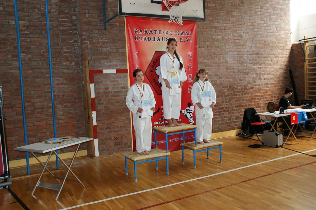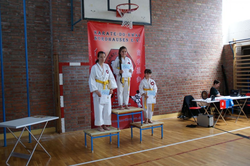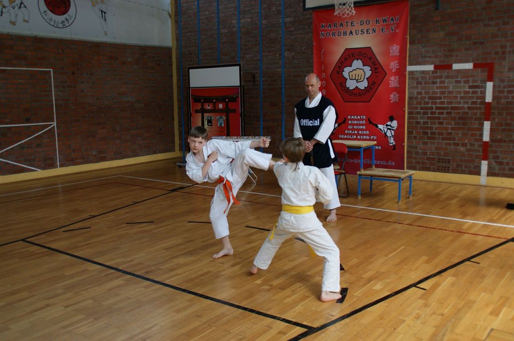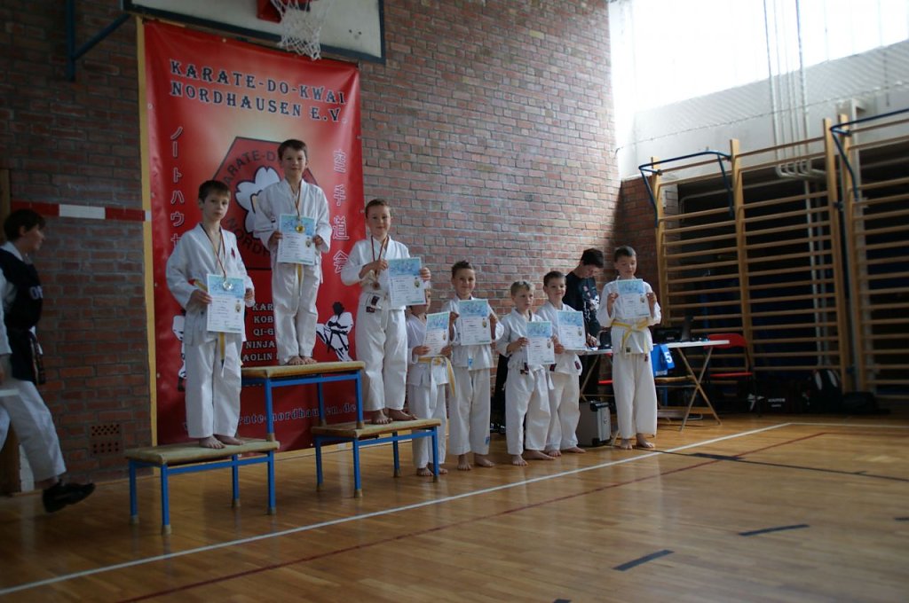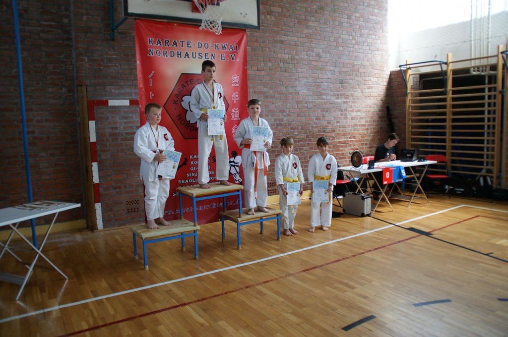In fünf verschiedenen Gruppen, gestaffelt nach Leistungsniveau, kämpften die Kinder bei dem Wettbewerb gegeneinander. Zuerst starteten die Jungen aus der Gruppe Anfänger - 9. Kyu (Weiß- und Weiß-Gelbgurte). Ihre Aufgaben waren Kata (Formenlauf) und Angriffstechniken auf einen Ball als Ziel. Erster wurde hier Julian Justin Thomas, vor Leander Prophet und Felix Schimm auf Platz 3. Bei den Mädchen siegte Sabine Balasoltanova vor Isabell Balali Soufi und Alicia Kohlhase.