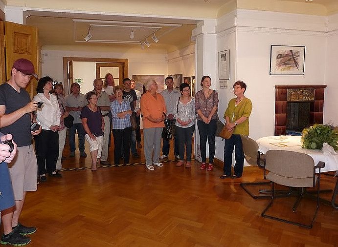 Von Museumsderektorin Christa Hirschler gab es heute am Nachmittag einen Glückwunsch zur Ausstellungseröffnung der nun schon zweiten Ausstellung von Katzmann hier in Sondershausen (2004/2005). In der zur zeit laufenden Ausstellung sind 30 Arbeiten sowohl in Aquarell, Airbrusk und Sgraffito zu sehen.
