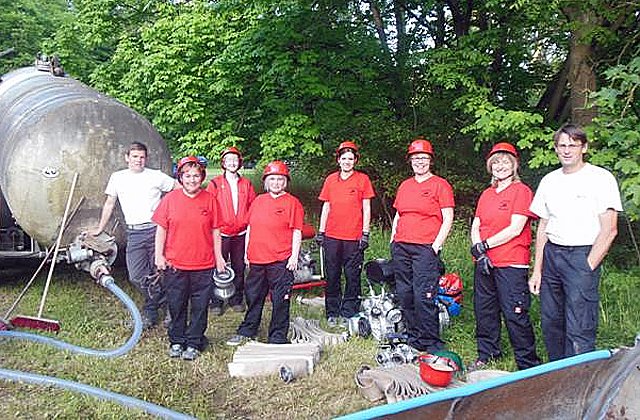 Die Frauenmannschaft der FF Himmelsberg bei der Vorbereitung des Wettkampfes