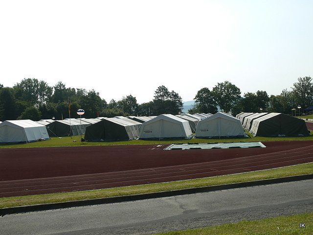 Alle Teilnehmer sind in Zelten auf dem Sportplatz der Bundespolizeiabteilung (auf dem Gelände des früheren Bundesgrenzschutzes) untergebracht. In den vergangenen Tagen ist hier eine richtige Zeltstadt mit über 80 großen Zelten entstanden.