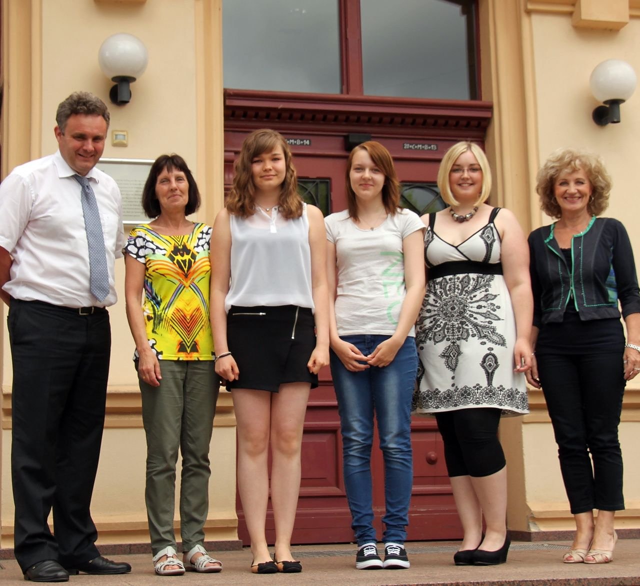 Von links: Gunnar Reuter und Ulla Seidel vom Büro der Landrätin/Zentrale Dienste, Laura Hartung, Sophie Hartwig, Lisa Gaßmann und Birgit Keller.