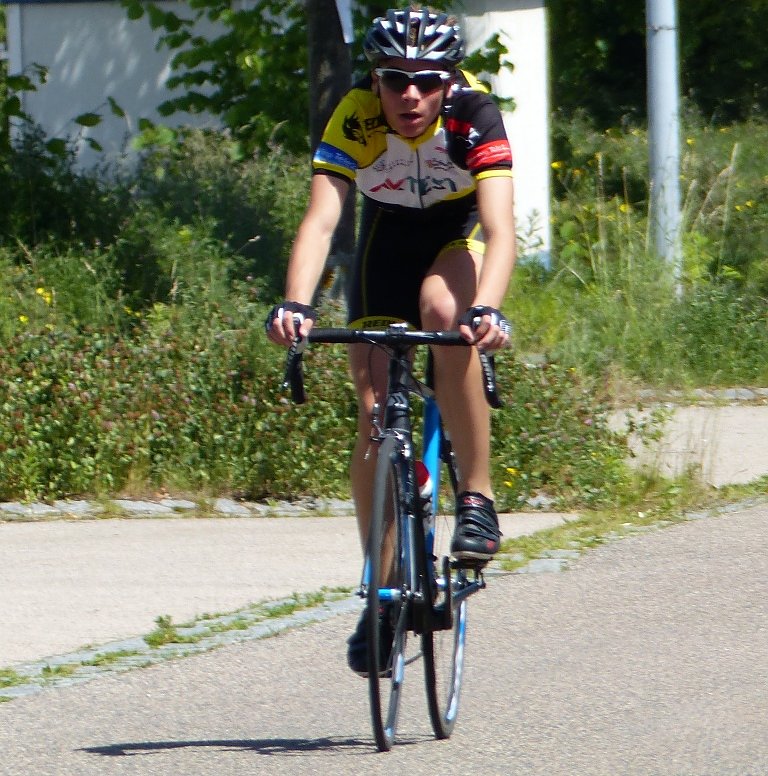 Erik Wetzel (U 17), Maximilian und Jurij Schleip-Ols (Jedermänner) nahmen dort am Kriterium-Rennen über18 Runden a 1,4 km teil. Als die Sonne im Zenit stand, ging es an den Start. Das Thermometer zeigte zu diesem Zeitpunkt ca. 30 Grad im Schatten, doch Schatten gab es auf der gesamten Strecke nicht.