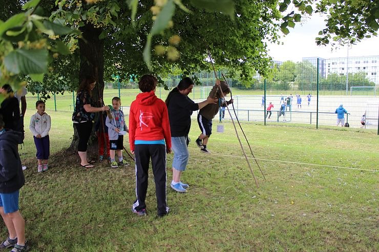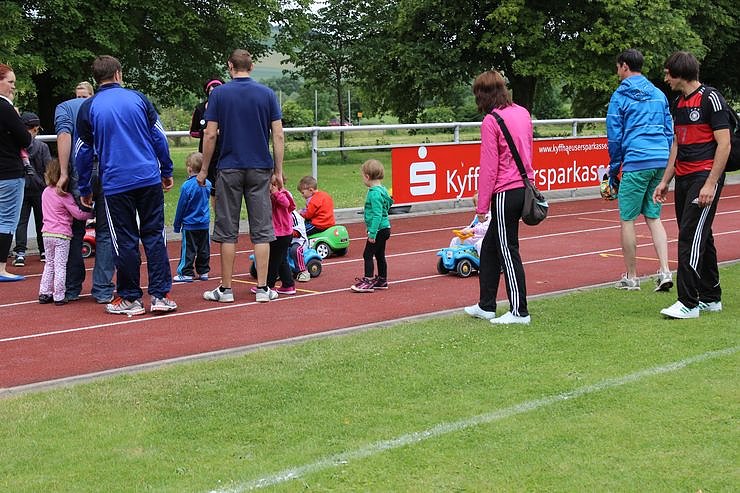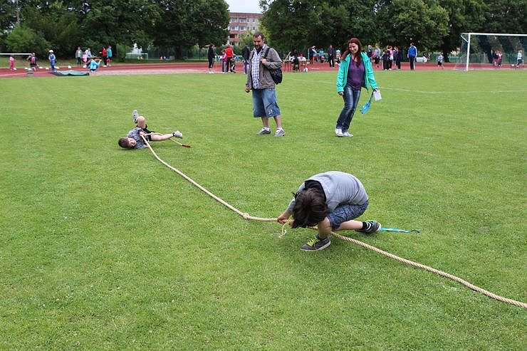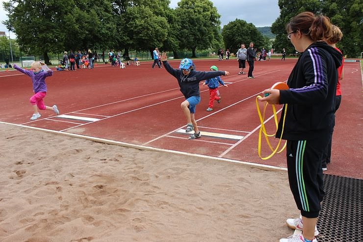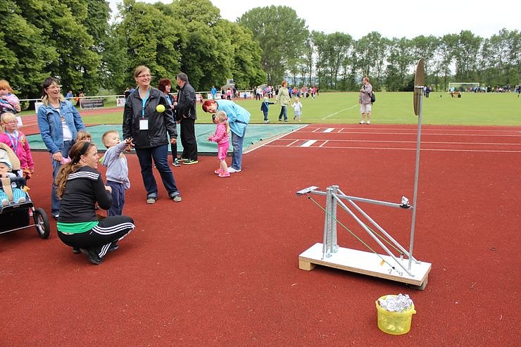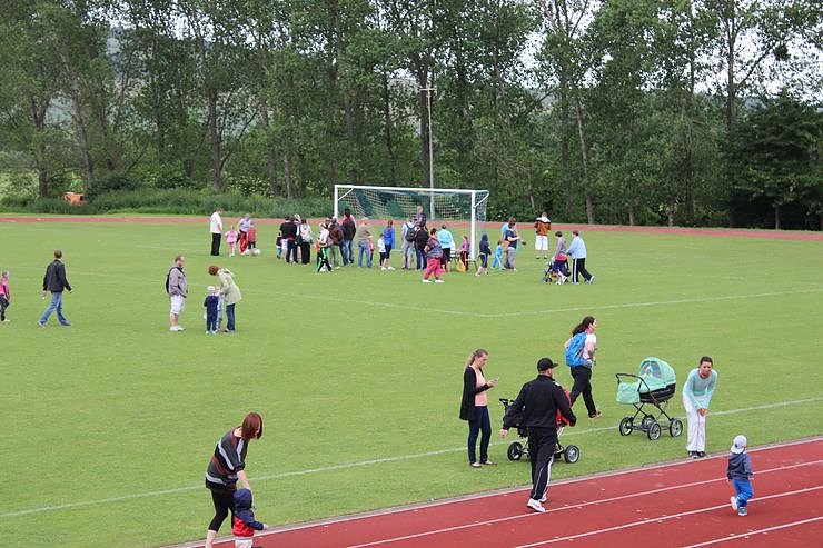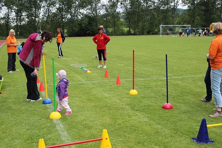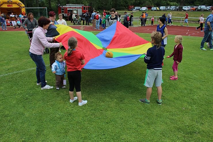 Insgesamt 14 Stationen konnte man mitmachen, so den 60 Meterlauf, Weitsprung, Hindernisparcours, Torwandschießen, Tauziehen, Schwungtuch, Eier-Laufen, Sackhüpfen, Schokokussweitwurfmaschine, Büchsen zielen, BobbykarRennen, Schubkarrenrennen, Slake-Line und Stiefelweitwurf.