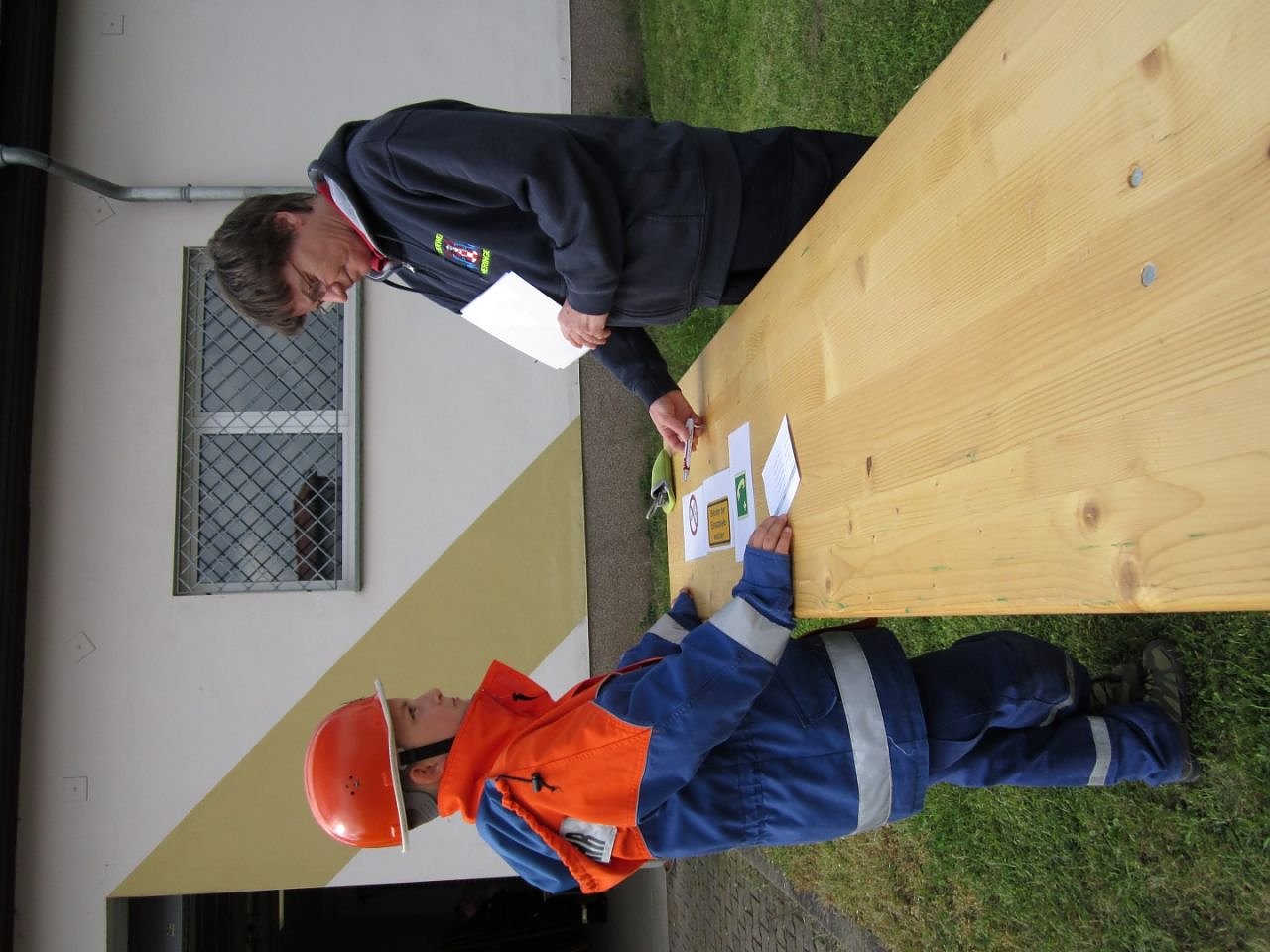 An sechs verschiedenen Stationen galt es beispielsweise, Kenntnisse und Fertigkeiten in der Knoten- und Gerätekunde anzuwenden, Hinweisschilder aus dem Bereich Wasserentnahmestelle zu erkennen oder fünfzehn Fragen rund um das Feuerwehrwesen zu beantworten. Die Aufgaben mußten zum Teil in Einzelabnahme oder im Team erfüllt werden. Die fachliche Aufsicht hatten dabei die Jugendfeuerwehrwarte aus den Ortswehren. Am Ende erhielten alle Absolventen nach der Bewältigung der gestellten Aufgaben ihre Urkunden sowie die heißersehnte goldene Anstecknadel als sichtbares Zeichen der erfolgreichen Teilnahme aus den Händen der Kreis-Jugendfeuerwehrwartin Manja Bernsdorf.