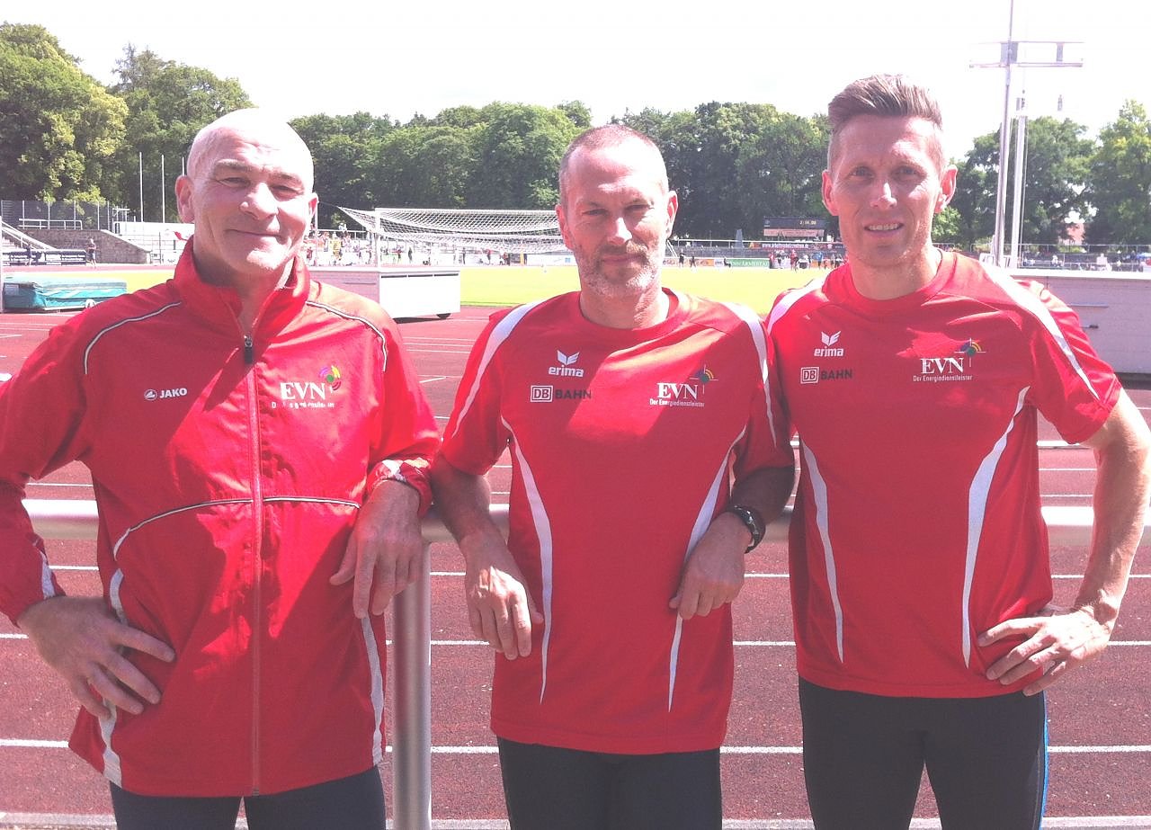 Sieggarant war einmal mehr das Seniorentrio Marco Bachmann, Thomas Biedermann, Jörg Ziegler von der HSG Nordhausen. Alle drei holten sich überlegen jeweils zwei Meistertitel in den Sprintdisziplinen. Zwar waren sie mit ihren Leistungen nicht restlos zufrieden, was aber sicher auch etwas an der zu schwachen Konkurrenz lag. Bei den Deutschen wird es sicher deutlich schneller gehen. Jörg Ziegler (M55) sammelte neben den Siegen über 100 du 200 Meter noch Silber im Weitsprung und wurde über 400 Meter bei den Jüngeren der AK 45 startend ebenfalls Zweiter.