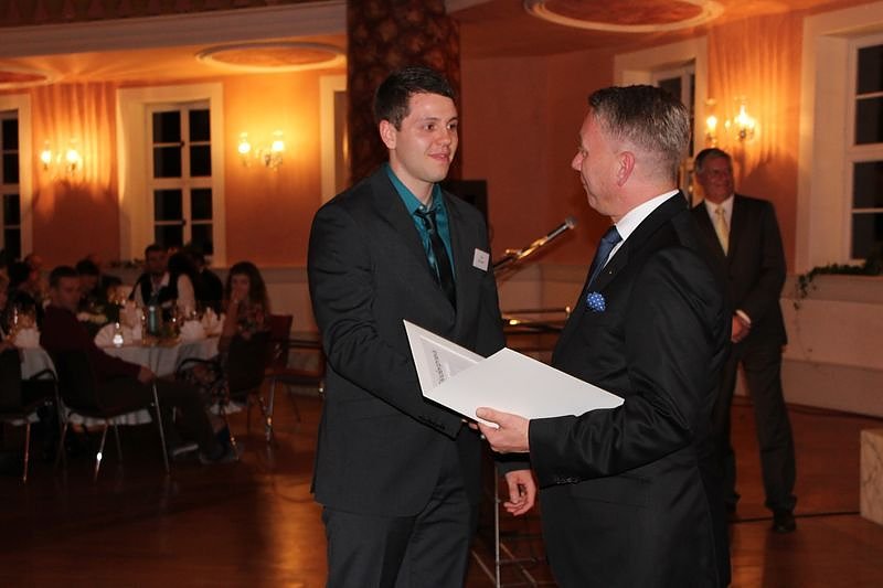 Industriekaufmann Stefen Sebert (aus Görsbach) von den Stadtwerken Sondershausen bedankte sich stellvertretend für alle Preisträger mit den Worten von Adolph Freiherr von Knigge; ,,Keine Wohltat ist größer als die des Unterrichtes und der Bildung. Wer jemals etwas dazu beigetragen hat, uns zu weiseren, besseren und glücklicheren Menschen zu machen, der müsste unseres