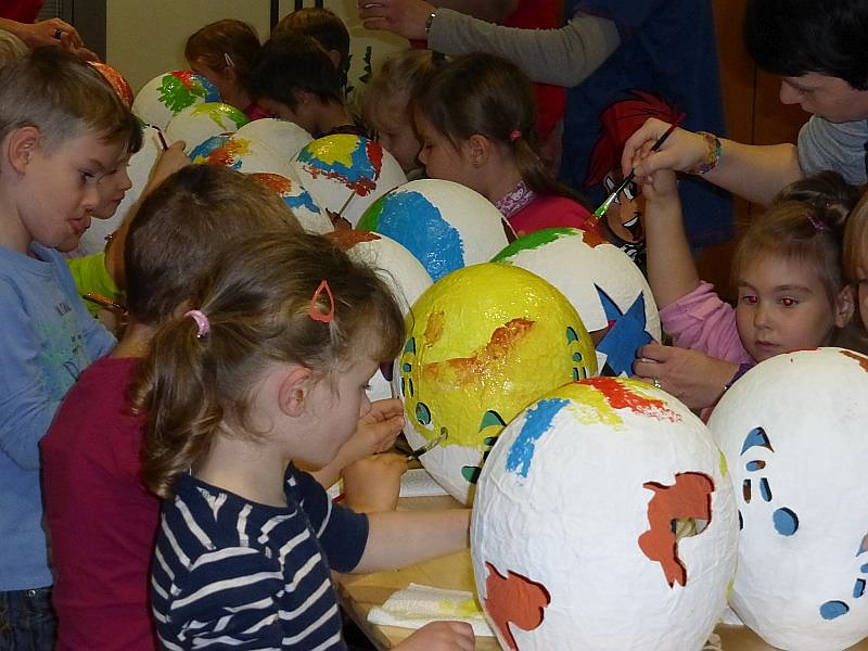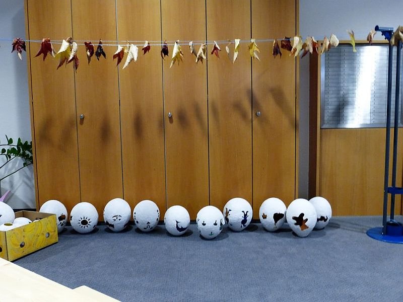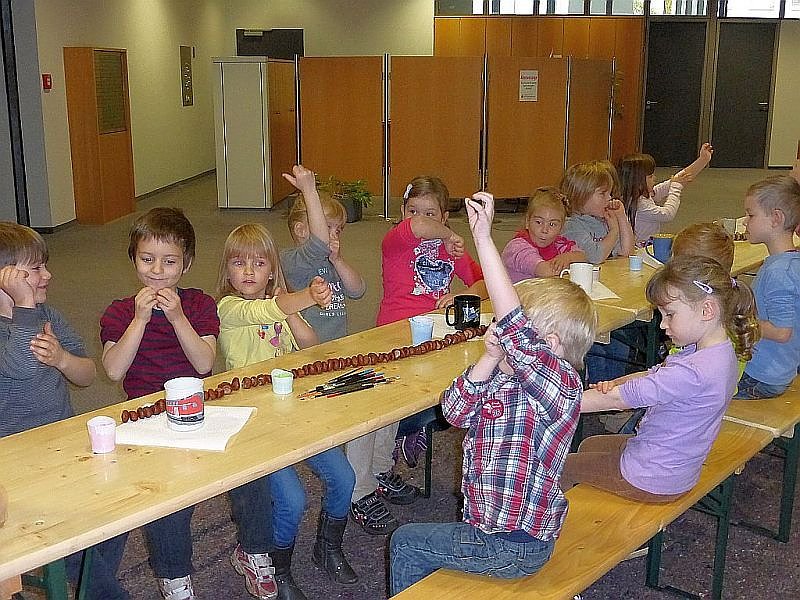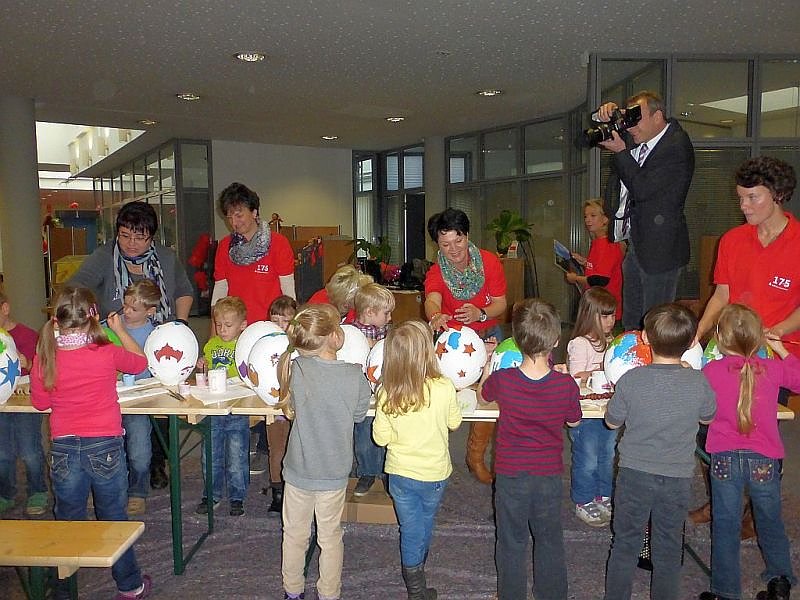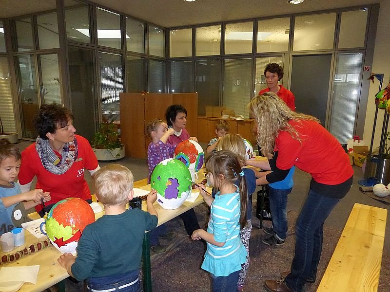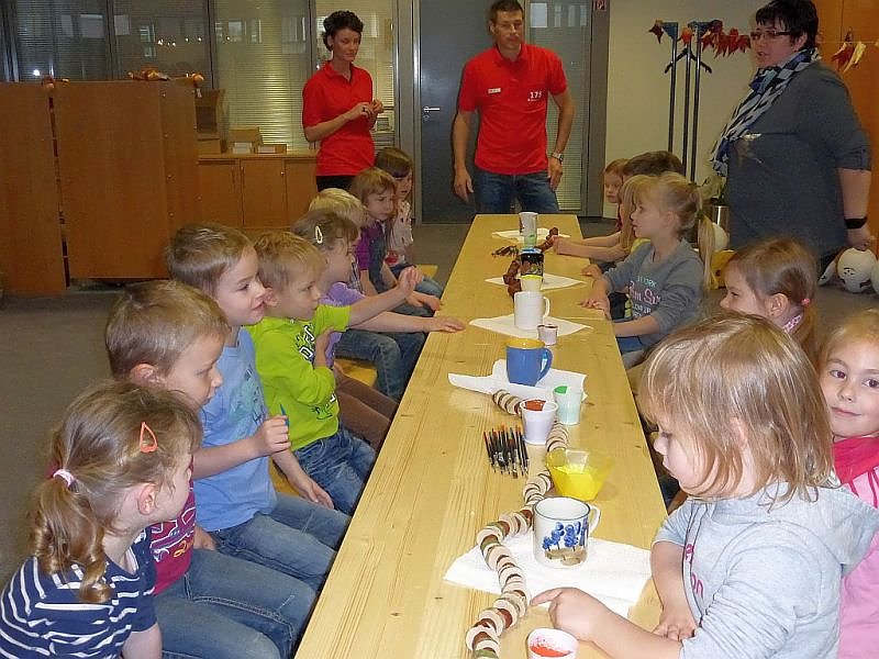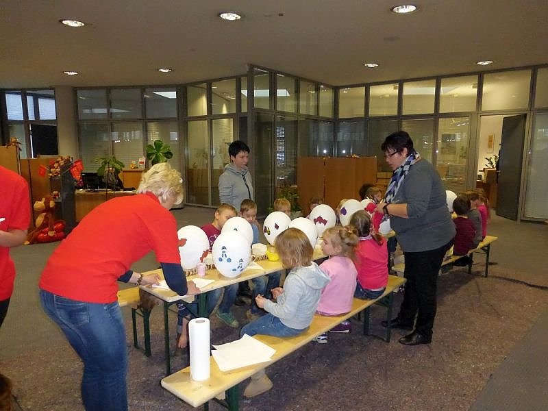 Die Kinder aus dem Kollwitz - Kindergarten trafen um 9.00 Uhr ein um Lampions zu bemalen, die sie beim Umzug mit sich führen können.