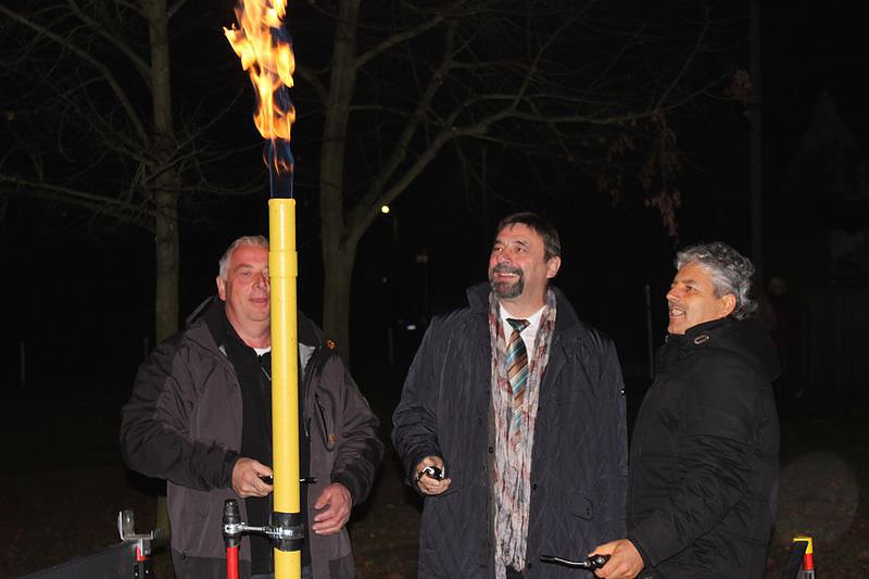 Die Reden waren nicht lang und so konnten Dieter Kroneberg, Joachim Kreyer und Rainer Gschwind die Erdgasflamme entzünden.