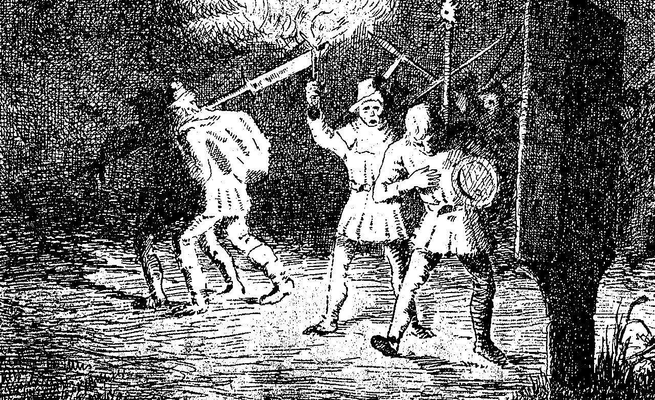 Aufständige Bauern auf dem Heimweg nach der Plünderung des Klosters Himmelgarten 1525 von Fritz Teichmüller (Foto: Archiv Kneffel)